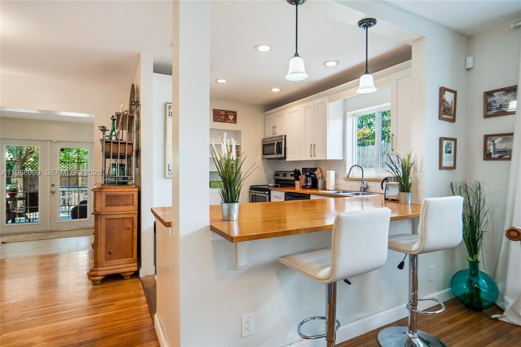 Available long or short term fully furnished: ask for available dates! Great cozy home for up to 12 guests, 5 minutes from Hallandale Beach & Hollywood Oceanfront, with its miles of boardwalk along the sandy beach; located a few blocks from Gulfstream Park at the Villages & a short drive to Aventura Mall. This property has 4 nice size bedrooms + an entrance den & a Florida room overlooking the private front yard. Gorgeous bathrooms. Kitchen opens to the entire living/dining/media room & Florida room. Property is surrounded by lush landscaping for privacy & completely fenced in. There are 2 entrances from both front & back yards. Huge mango tree can be admired from the private covered outdoor deck. 1 wing has 3 bedrooms. The 4th bedroom is completely separate on other side. Lots of parking. MLS # A11988969
