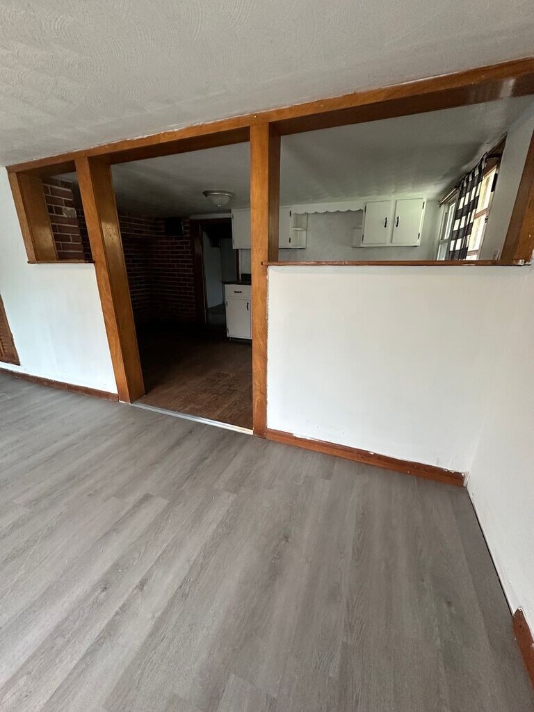 Three bedroom house with a unique layout sits as the last house on a dead end street. Upon entering the front door you will encounter a family room, oversized living room and all three bedrooms. The kitchen is located in the basement along with another family room with new flooring. Dining room area with new flooring is directly off of the kitchen. Washer/Dryer hookups and a large unfinished storage area. Door in kitchen leads to backyard. Tenant pays all utilities at this rental and is responsible for lawncare and snow removal. Limited street parking in front of the house is available. Security deposit is $950 with a one year lease. This house is not HUD approved and is not pet friendly.