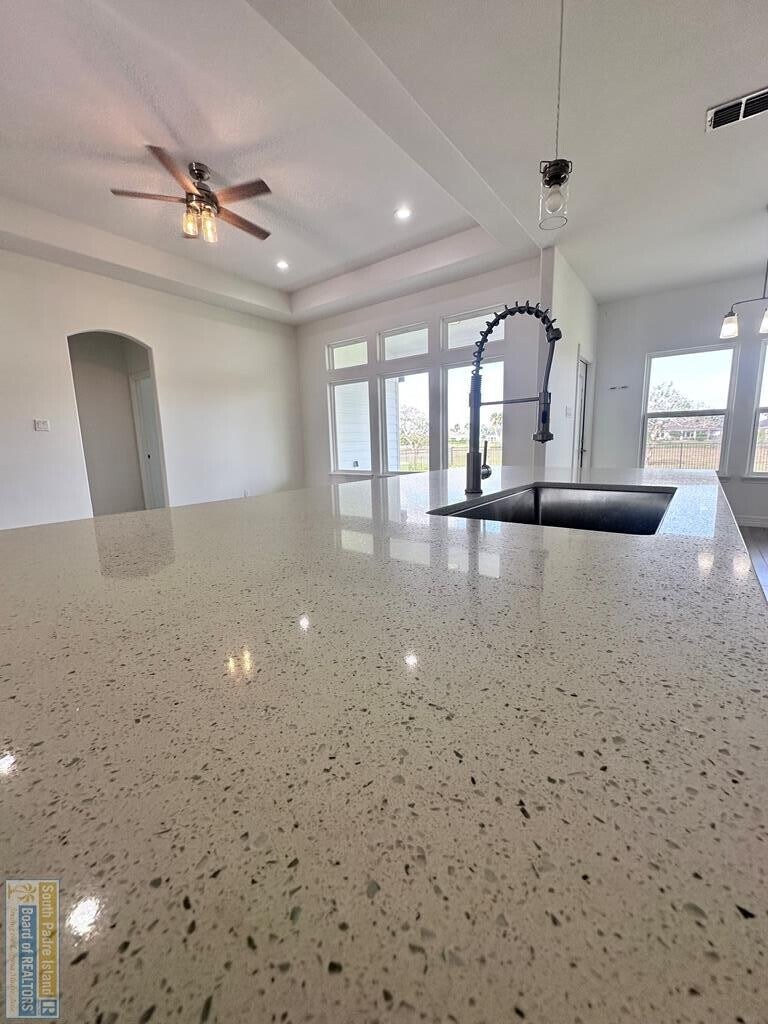 Enjoy living in this stunning 3 bed, 2 bath, open concept home with a bonus room/office, located in the Exclusive SPI Gated Golf Community! Amenities include: multiple pools, tennis courts, workout facility, DIVOTS sports Bar & Grill, 18 hole Golf Course and community boat ramp with access to Laguna Madre Bay. A great option if you are moving to the area for SPACE X. All stainless steel appliances. Enjoy all tile floors, a large master suite with walk-in shower, 2-car garage, private covered patio and access to great community amenities! Tenant pays electric and cable/internet. Included utilities: water, sewer, trash and lawn maintenance. Home is vacant and easy to show.