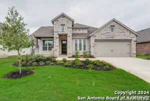 Built in 2023, this stunning single-story home is located within the highly sought-after master-planned community of Esperanza in Boerne, TX. The Calvert floor plan boasts 4 bedrooms, 3 bathrooms, a separate dining area, a private office with double doors, flexible living space, a spacious laundry room, a large covered patio, and a three-car tandem garage. An abundance of natural light fills the home through numerous windows. The chef's kitchen is a highlight, featuring a generous island with quartz countertops, a gas cooktop, and ample counter and cabinet space. A stainless steel refrigerator, along with a washer and dryer, will be installed before tenants move in. Esperanza provides a wealth of resort-style amenities, including a Palmera Resort Pool, a lazy river and splash pad, a zero-entry kids' pool, hand-carved limestone boulder furniture, a party bandstand for live music, a food truck court, a multi-use event space, a 24-hour fitness center, Roca Loca Lawn, and Roca Loca Beach. Minutes from Downtown Boerne - A charming historic district known for its German heritage, boutique shops, local restaurants, and preserved 19th-century architecture along Main Street. It blends small-town warmth with a lively arts, dining, and festival scene.