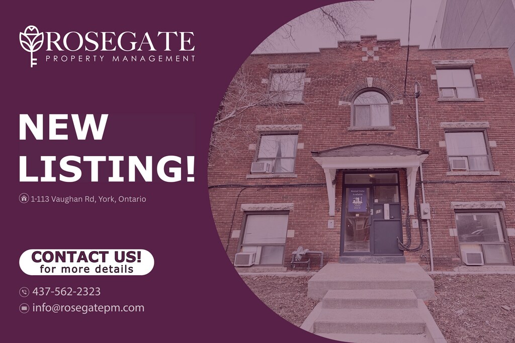 There is currently a 1 Bed 1 Bath Apartment for rent with 480 listed at 113 Vaughan Rd. It is Available April 9, 2026.