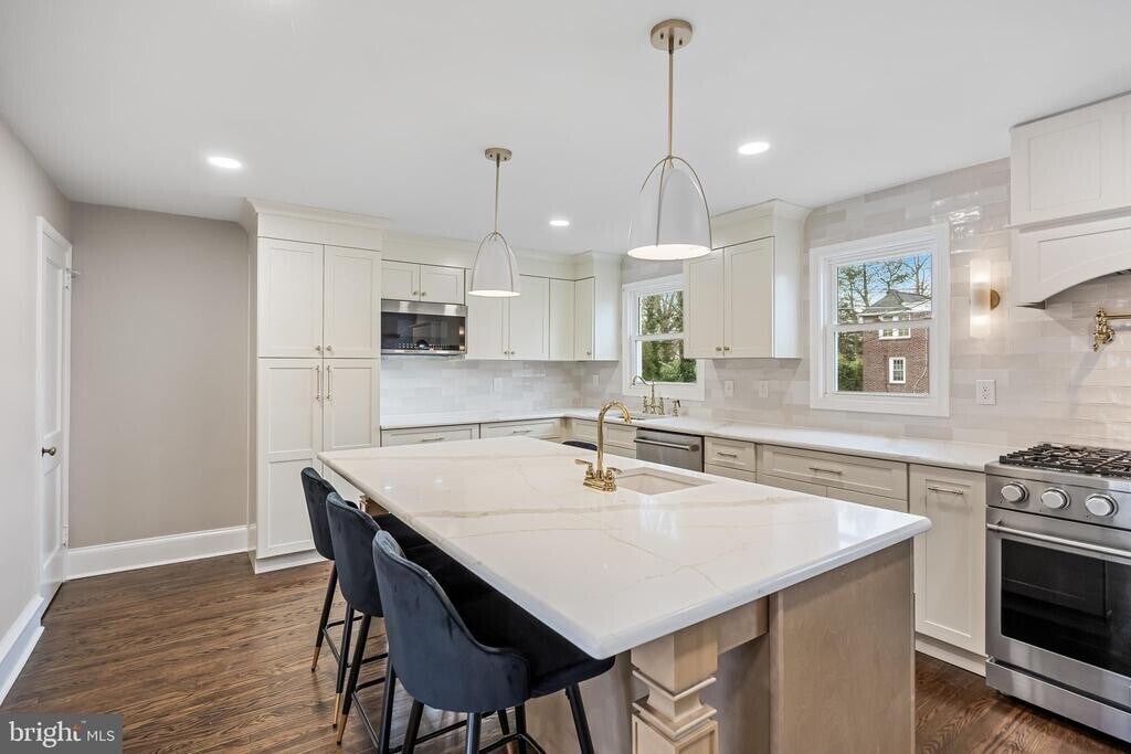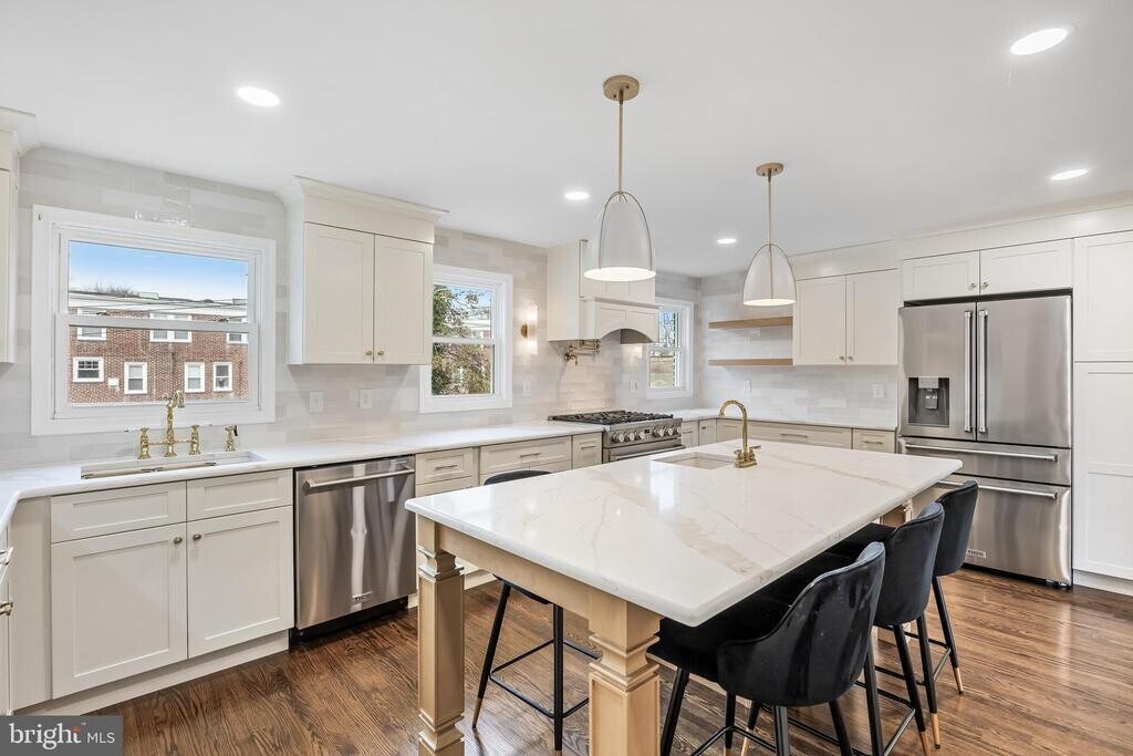 Welcome to modern living in one of South Jersey’s most sought-after communities! This beautifully remodeled 4-bedroom, 2-bath home offers an unbeatable location—just steps from vibrant Haddon Ave, where you'll enjoy restaurants, coffee shops, bars, boutique storefronts, parades, seasonal events, and a local gym. Commuters will love being walking distance to the PATCO Speedline, placing you in Philadelphia within minutes. Completely renovated in August 2024, this home blends timeless character with high-end finishes complete with brass fixtures throughout add a touch of elegance. Gleaming refinished hardwood floors run throughout the main level and upper level, while the custom-designed kitchen is a true showstopper—featuring a 36-inch Thor range, Thor refrigerator, and an impressive 8-foot island perfect for gathering and entertaining. The living room offers warmth and style with custom built-ins framing a brick electric fireplace—an ideal place to unwind after a long day. Upstairs, you'll find three spacious bedrooms and a beautifully upgraded full bath. The large primary bedroom includes two closets for ample storage. The fully finished walkout basement provides exceptional versatility with a fourth bedroom, a second full bath, and direct access to the driveway and backyard patio—perfect for guests, in-laws, a home office, or movie room. Step outside to enjoy your outdoor space complete with newer shed for extra storage. No detail has been overlooked—all appliances, systems, and the roof are new, ensuring low-maintenance living and energy efficiency.