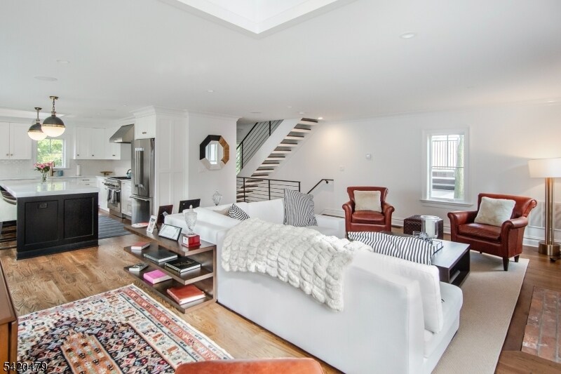 Welcome home to this architect designed and constructed, multi-level 1 bed, 1.1 bath apartment in downtown Morristown! Enter through the foyer, or the heated garage, and take the stairs up to the open concept main living area. The sun-drenched, spacious living area boasts large windows, a skylight, beautiful hardwood floors and a lovely wood burning fireplace. The living space flows seamlessly into the well-appointed kitchen outfitted with stainless steel appliances, a gas range and an island with seating for four. A half bath, pantry, in-unit laundry, and flexible sitting or dining area off the kitchen complete the main level. Head upstairs to the large primary suite with hardwood floors, walk-in closet, ensuite bath with double vanity and high-end finishes throughout. The outdoor space includes a back deck and grilling area, perfect for entertaining. This excellent location is across from Whole Foods, 0.5 miles to the center of vibrant Morristown (shops, restaurants, theaters and more), and 1 mile to NYC direct transit. Come see everything this stunning Morristown apartment has to offer! Pets allowed.