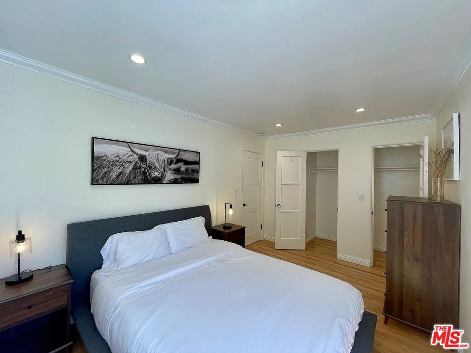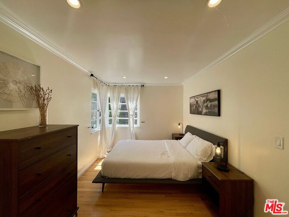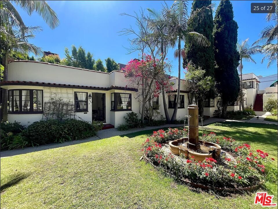 Charming 2Bed/1Bath upstairs apartment in 1920s Spanish bungalow court NO common walls Very bright corner unit, faces West and gets lots of natural light all day Large patio Directly across from Douglas Park No one above or below Beautiful white granite countertops & stainless steel appliances, including dishwasher Hardwood floors throughout Tumbled marble bathroom Large closets & lots of storage space Street parking (permit required from the City) Laundry in unit Split system A/C located in living room above faux fireplace Walking distance to all the shops, grocery stores, & restaurants on Wilshire Blvd Shared grassy courtyard which features a gorgeous antique style fountain, surrounded by bougainvillea and rose bushes Water/sewer/trash included. Tenant responsible for gas & electric. Pet friendly. 1 yr lease. MLS# 25597109