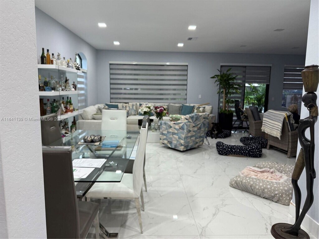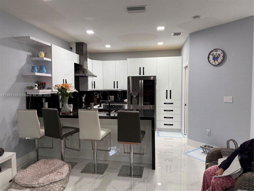 This fully upgraded 3-bed, 2.5-bath corner lot townhome in Silver Palms showcases exceptional craftsmanship and modern design. Featuring porcelain floors, impact windows, zebra blinds, and a beautifully renovated kitchen with top-tier appliances. Bathrooms include LED-lit faucets and built-in Bluetooth speakers, while the spacious primary suite offers a dream shower experience. Enjoy peaceful lake views from the backyard, complete with an insulated pergola—perfect for outdoor lounging or entertaining. Prime location close to schools, shopping, and major roads. Listing posted by Dinorka Bogris [SYNDID 4142918 12052025]