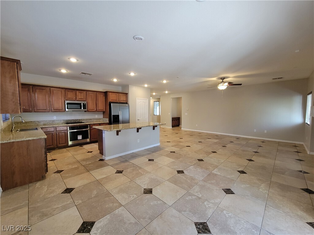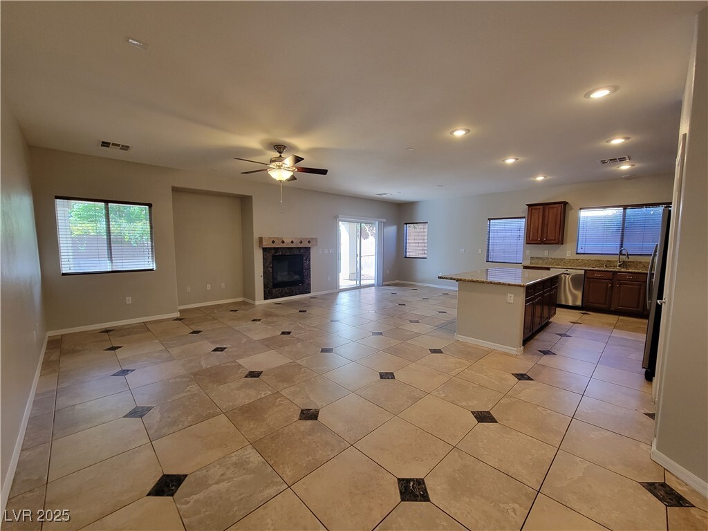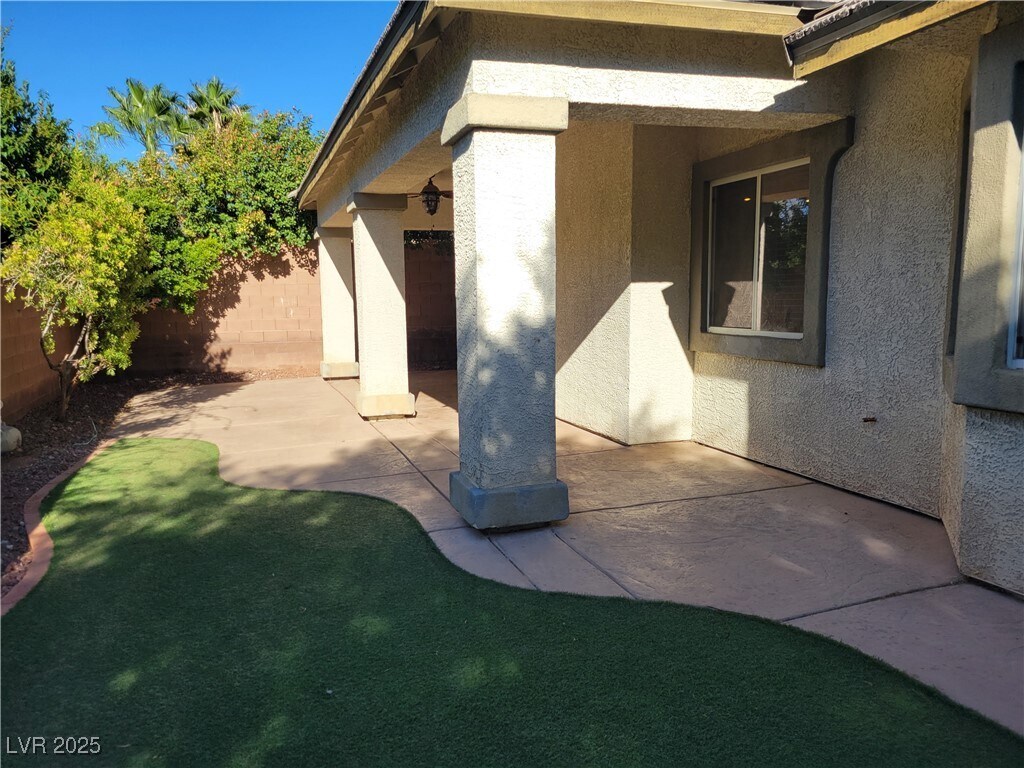 Wow! Lovely 3 bedroom single story home in the heart of Summerlin! Kitchen has center island, breakfast bar, granite counters & stainless steel appliances. Upgraded wood faux blinds thru out, spacious living/ great room w/fireplace, primary bed sep from others w/ceiling fan and walk in closet. Additional bedrooms both have walk in closets. Covered patio in back w synthetic lawn, planter box for gardening & ceiling fan. Must See! 1 year lease minimum. Restrictions: Non Smoking, pets considered case by case. Renters insurance & utility transfer mandatory before move in. Total Monthly Payment $2,440 ($2,395/rent+$20/trash+$25/sewer). Optional RBP $29.99 monthly. All NWPM residents can enroll in the Resident Benefits Package (RBP) which includes HVAC air filter delivery, positive credit reporting with timely rent payments, $1M Identity Protection, move-in utility concierge service, rewards program, and much more!