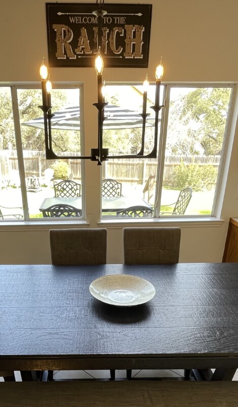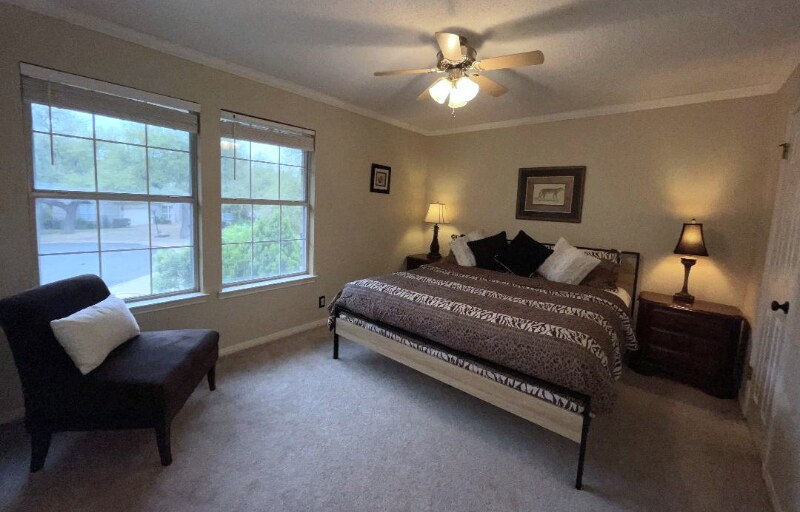 Property Id: 2114876 5 Bedrooms, 2 1/2 bath home, in Northwest Austin, 1 to 12 month lease. Features include: Kitchen and Dining Fully Equipped Kitchen-Place Settings, Tools, Utensils Cooking and Serving Pieces French Door Fridge With Beverage Drawer, 2 Icemakers provide crushed, cubed, craft ice 3 Separate Ovens - Gas, Electric, Microwave Butler's Pantry 5 Bedrooms Furnished as 2 King Beds, 3 Queen Beds Bathrooms Ensuite Master with soaking tub, walk-in shower, double sinks Hall Bath With Separate Shower Room Powder Bath Entertainment and Connection 4 LED TVs With Roku Antenna for Live TV Board Games WIFI Outdoor Space Deck, Grill, Outdoor Seating Fully Fenced Back Yard Fire Pit Neighborhood Amenities Gated Neighborhood Pool Hiking Trails in Greenbelt, Park, Sports Court Other Amenities Keyless Entry 2 Car Garage Office Space Full Size Washer and Dryer