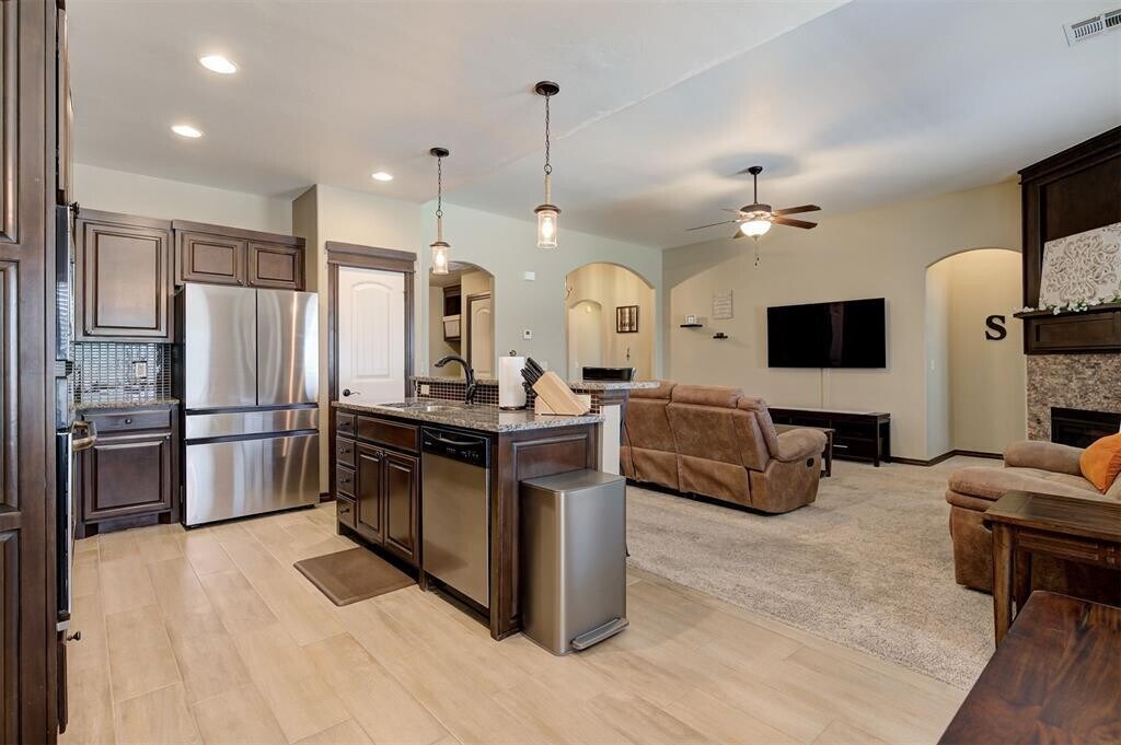 Beautiful 3-bedroom+ study and bonus,2-bath home in the highly sought-after Meadows at Surrey Hills neighborhood — just steps from the Surrey Hills Golf Course! Built in 2014 as a model home,this one-owner property offers a versatile upstairs bonus room that could easily serve as a 4th bedroom,plus an office with vaulted ceilings and a closet — making it possible to convert this into a 5-bedroom home with ease. The spacious master suite is a true retreat,featuring a vaulted ceiling with exposed cedar beams,a luxurious soaking tub,an amazing walk-in closet,and a double vanity. The modern kitchen boasts custom stained cabinets,granite countertops,a built-in electric range,a stainless steel dishwasher,and a nice-sized pantry. The home is accented with beautiful stained trim throughout,adding warmth and character. The cozy living room features a gas log fireplace with a hidden cabinet,perfect for storage and style. Recent updates include new carpet and newly tiled flooring in 2025,plus a new roof! The oversized back patio and fenced-in backyard are perfect for entertaining. Extra storage is a breeze with additional decking in the attic. Enjoy neighborhood amenities including a pool,walking trails,fishing ponds,and a clubhouse Don’t miss your chance to own this incredible home — schedule your showing today! THIS HOME IS READY TO MOVE IN AND IMMACULATE! For sale or lease.