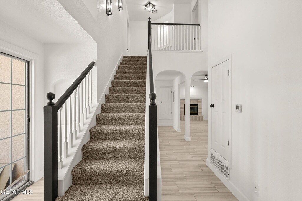 Spacious two-story home located in Northeast El Paso featuring 4 bedrooms and 3 full bathrooms. This well-designed floor plan includes two bedrooms and a full bathroom downstairs,perfect for guests,extended family,or a home office setup. Enjoy a bright and open living area with a mix of tile and carpet flooring throughout. The modern kitchen features beautiful quartz countertops,ample cabinet space,and a dining area ideal for entertaining. Upstairs,you'll find the primary suite with a private balcony,perfect for relaxing,along with an additional bedroom and plenty of closet space throughout. The home also offers a low-maintenance backyard,ideal for gatherings or quiet evenings. Conveniently located near Fort Bliss,schools,shopping,and easy access to major highways. Schedule your showing today!