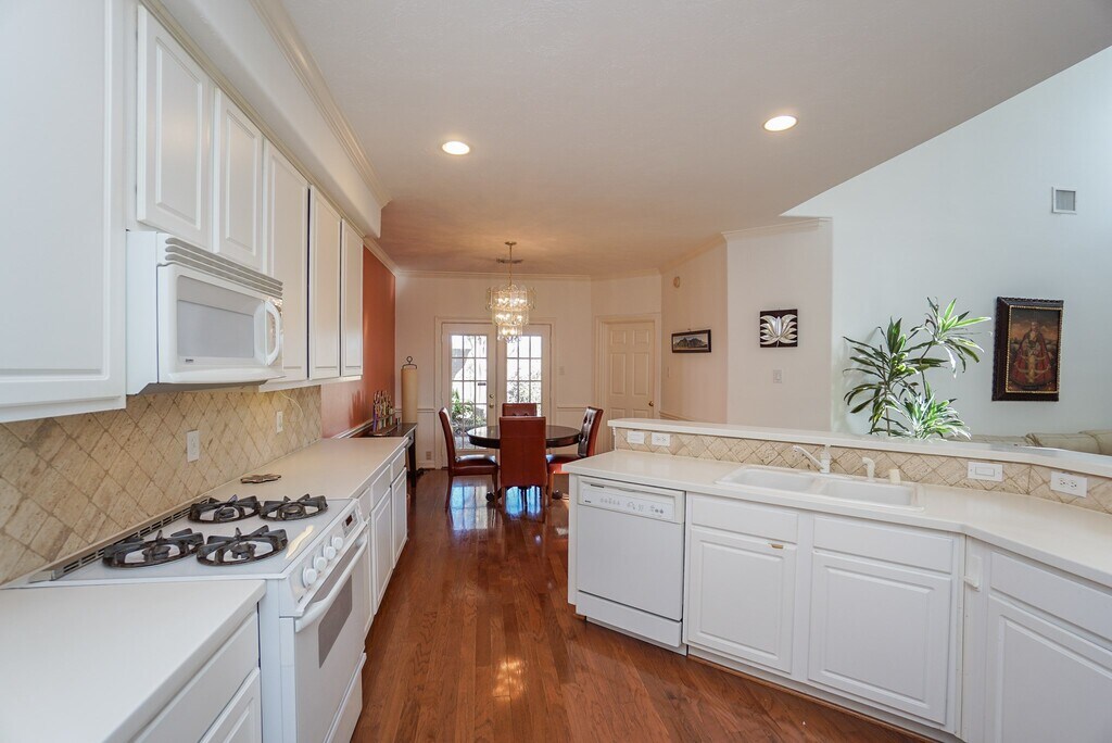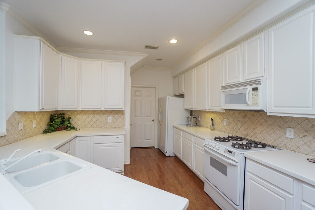 Beautiful townhome in gated community in the Energy Corridor. This property features 3 bedrooms,2.5 baths,2 car garage. Very open concept with high ceiling,plantation shutters,and gorgeous hardwood floors on 1st floor. Open kitchen with white 42" cabinets,Corian counter top,tumbled marble back splash,walk-in pantry,refrigerator,washer and dryer included. Nice size master bedroom with wood floor,his and hers walk in closets. Master bath with double sink,tub and separate shower. Covered patio. Great location,close to shopping and restaurants,walking distance to Terry Hershey Park with walking,jogging & biking trails. Easy access to Eldridge Parkway,Westheimer Rd. and I-10. MLS# 16399485