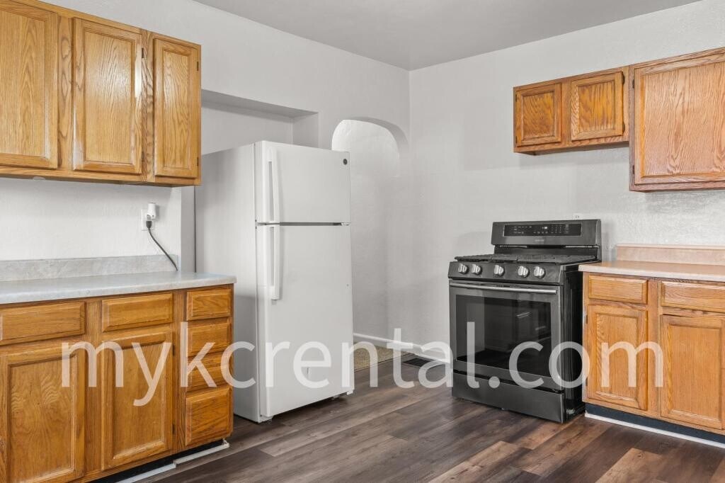 1131 Hasbrook St - Kansas City, KS 1 Bed 1 Bath 721 Sq Ft This half duplex offers a bright, comfortable living space with a practical layout and a touch of vintage charm. The living room features freshly painted walls, soft carpet underfoot, and an arched doorway leading toward the kitchen. The kitchen has updated flooring, plenty of cabinet space, and comes equipped with a gas range and full-size refrigerator. The tiled bathroom includes a full tub and modern fixtures. A separate laundry nook adds everyday convenience. Professionally managed with attentive ownership, this home is well cared for and maintained with long-term tenants in mind. Highlights: Fresh paint throughout Comfortable carpet and durable flooring mix Gas range and refrigerator included Tiled bathroom with full tub Laundry area with hookups Professionally managed, locally cared for property