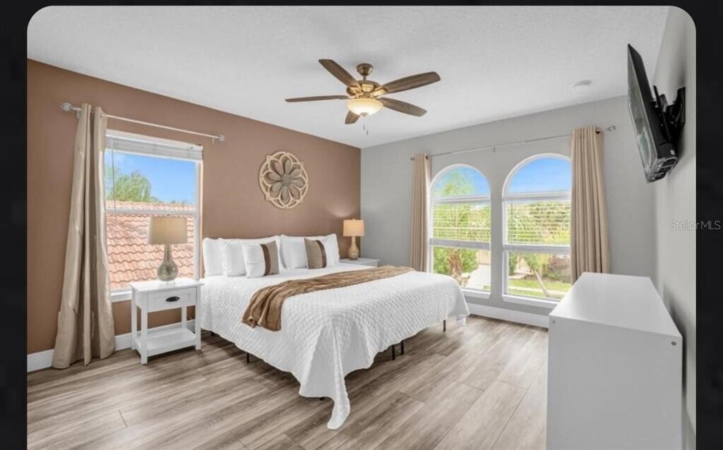 Beautiful fully furnished modern residence located in the exclusive Bella Vida community at 1131 Marcello Blvd,Kissimmee,FL 34746,just minutes from Orlando’s top attractions. From the moment you arrive,this home offers a sense of space,comfort,and elegance. Featuring 6 spacious bedrooms and 6 bathrooms,plus two flexible rooms ideal for a family room,entertainment area,or home office,this property is designed for both comfort and functionality. The open-concept layout is enhanced by large windows that fill the home with natural light,laminate flooring throughout,and tasteful décor that adds warmth and style to every space. The outdoor area offers a private pool and jacuzzi,perfect for relaxing or enjoying time with family and friends,along with a cozy dining space ideal for casual meals. The home also includes a designated exercise area and generously sized living spaces that make everyday living feel effortless. Bella Vida is a resort-style community offering outstanding amenities including a clubhouse,swimming pool,fitness center,movie theater,playground,basketball court,and 24/7 gated security. Conveniently located near shopping,dining,major highways,and just 20 minutes from Disney parks,this home offers the perfect balance of luxury,comfort,and location. A property designed to be enjoyed and lived to the fullest. Schedule your private showing today and experience it for yourself. MLS# O6374848