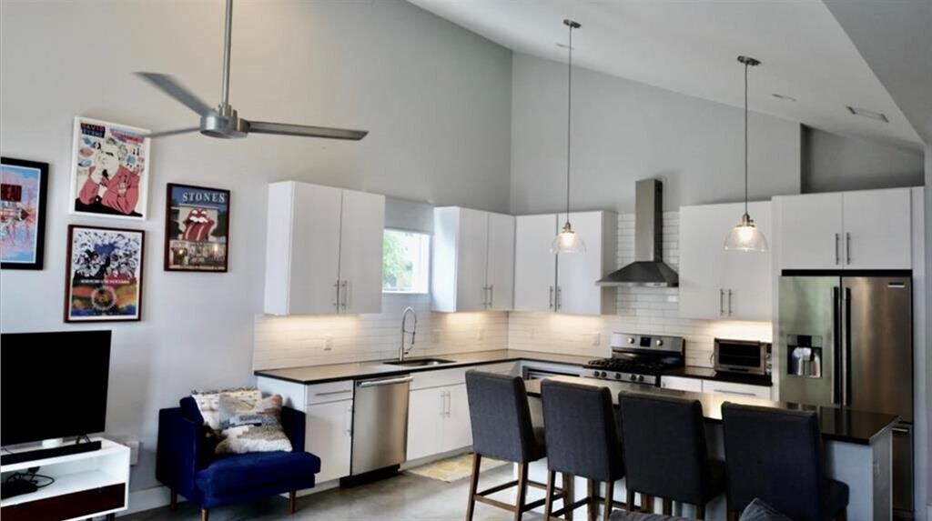 Located in highly coveted East Austin, this beautiful 3 bedroom, 2 bath home provides both style and substance. Lucky tenant - solar panels included means very LOW cost utility bills each month! Hosting company comes easy with an eye-catching open concept living area. Cathedral ceilings and massive windows cast natural light throughout. The gourmet kitchen is a perfect spot to prepare and enjoy your next delicious meal with stainless steel appliances and quartz countertops + coffee bar. The third bedroom room makes for a cozy office/study or game room. The peaceful backyard features a covered porch, and lush green space, perfect for private gatherings and relaxation. The property includes a private driveway with ample parking + garage, multiple raised beds for the avid gardener and modern cedar fence for privacy.