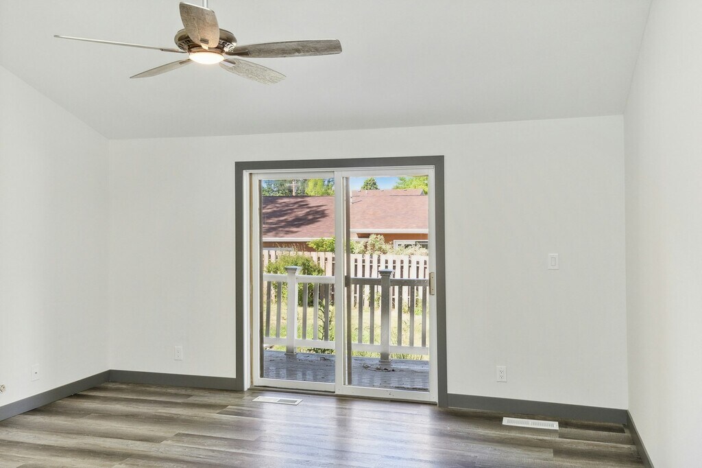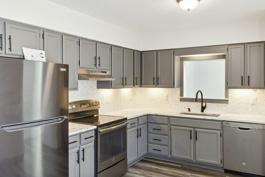 Remodeled 2 bedroom, 1 bath townhouse with upgraded kitchen and new counters and backsplash. Stainless steel appliances and sink. Fully remodeled bathroom with new shower, toilet and vanity. All new flooring, doors and moldings throughout. New light fixtures throughout. New HVAC high efficiency furnace. Property has a 1 car garage, private front patio and a nice back deck. With vaulted ceilings this home is spacious and light and bright. Turnkey unit ready for new resident.