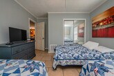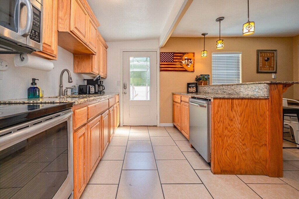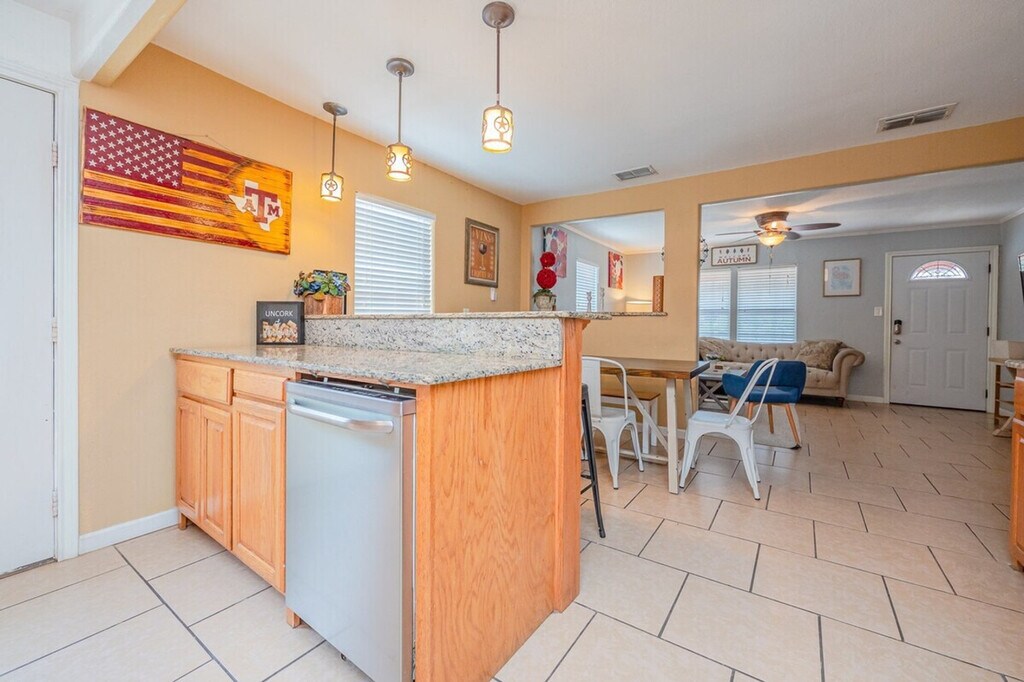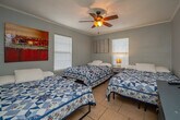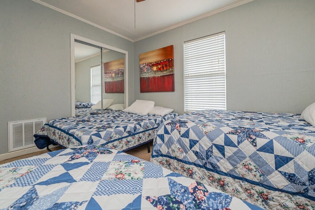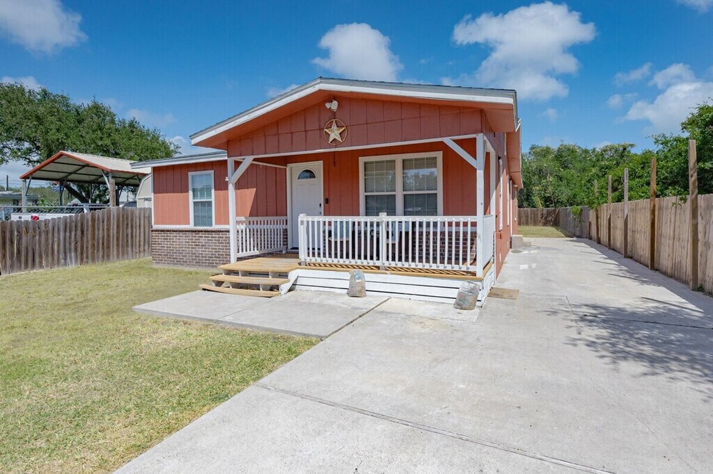 Welcome to Howdy Hideout, a charming 3-bedroom, 2-bath ranch nestled between Port Aransas, Rockport, and Corpus Christi. This Gulf Coast escape offers rustic charm, smart TVs in every room, and easy access to beaches and state parks. Unwind in a peaceful oasis away from the hustle and bustle. The Howdy Hideout is the perfect family vacation home located in Aransas Pass, just a short drive from Rockport, Port Aransas, and Corpus Christi. Retreat to the master bedroom with a cozy queen bed, smart TV, and private bathroom. The second bedroom features a queen bed and a 42" smart TV, while the family bedroom accommodates up to six guests with three full-size beds and a 32" Roku TV. Gather in the inviting living room with oversized couches and a 55" smart TV. The fully equipped kitchen includes glassware, plateware, non-stick cookware, and all necessary utensils. Pets are welcome with a $120 per stay fee per pet, capped at $200 per pet. A mid-stay cleaning is required for stays over 7 nights, with the same fee as the regular cleaning. All pets must be kenneled and house trained, and kept off furniture and bedding, or a minimum cleaning fee of $100 will be assessed. Aransas Pass is a quaint town nestled between Rockport, Port Aransas, and Corpus Christi, making it a top destination for exploring the Gulf Coast. The home is a short drive from popular attractions like Rockport Beach, Port Aransas Beach, and Goose Island State Park. It's best to have your own car as there is no Uber in town, but local taxi companies are available. The entrance to the front of the home is an unpaved strip of grassy area about 20 feet in length, but poses no issue for vehicles. Trash pickup is every Tuesday and Friday, and trash bins must be rolled to the street curb. Emotional support animals are not exempt from the pet policy and fees. Starter supplies are provided, including trash bags, dishwashing pods, and toiletries, but additional supplies are the guest's responsibility unless the stay is 14 days or longer, in which case a mid-stay replenishment may be offered. [SI]