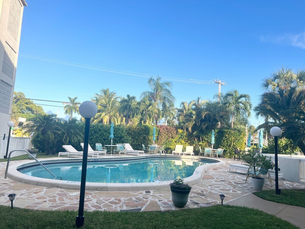 1 bedroom 1 bathroom kitchen and living living, dinning area, bathroom and utility closet. Ground floor with a pool view. Sunny, very clean and freshly painted. Prime location: East Boynton Beach, corner of Federal and Woolbright. Requirements: First / Last / security deposit. paystubs and landlord references. For more information reach out to PB:PARTNERS at