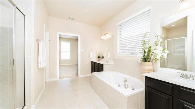 Discover this stunning 5-bedroom, 3.5-bathroom home located in the highly sought-after gated community of Enclave at Hidden Cove, just a short walk to beautiful Lake Lewisville. Designed with both comfort and style in mind, this residence features wood floors, elegant curved arches, and neutral paint tones that create a warm, inviting atmosphere. Entertain with ease in the formal dining room, or gather in the spacious family room that seamlessly flows into the open-concept island kitchen. The kitchen is a chef’s delight, boasting granite countertops, stainless steel appliances, tile backsplash, and abundant cabinet space. The private first-floor owner’s suite offers a luxurious retreat with dual vanities, a relaxing garden tub, and a separate shower. Upstairs, enjoy a huge game room, a fully wired media room with stadium seating, and oversized secondary bedrooms—all with walk-in closets. Step outside to a pergola-covered patio, perfect for outdoor dining and entertaining with a fully privacy fenced backyard ready for your furry friends! The Enclave at Hidden Cove offers resort-style amenities, including a gated entrance, sparkling pool, jogging and biking trails, greenbelts, park, playground, private lake, and fishing pond. With its prime location near Lake Lewisville, spacious layout, and exceptional community amenities, this home truly has it all.