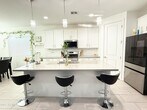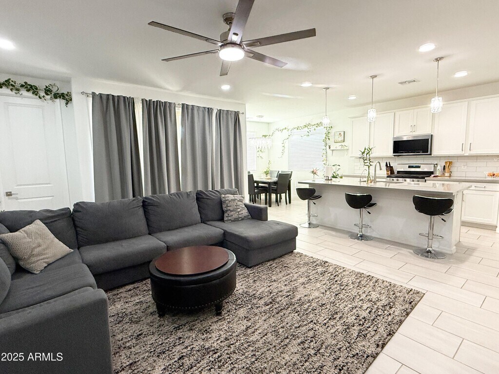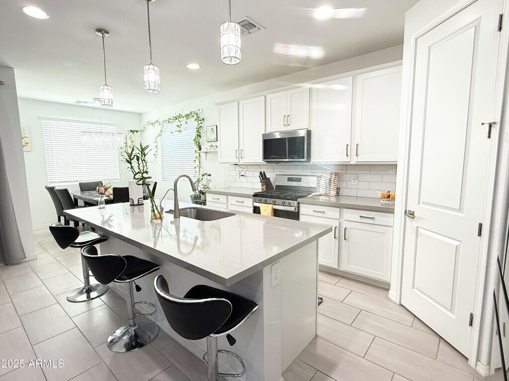No Application Fees! Newer 4 bedroom,2.5 bathroom East Mesa home with upgraded finishes throughout located in Destination at Gateway East. The home features a spacious open floor plan with 12'' x 24'' tile flooring in all living and high traffic areas,neutral paint,recessed LED lighting,ceiling fans in every room,and 2-inch wood blinds. The bright living room flows seamlessly into the modern kitchen,which includes quartz countertops,subway tile backsplash,shaker cabinets,large island with breakfast bar,walk-in pantry,gas range,and all stainless steel appliances. The split floor plan includes a large primary suite with walk-in closet,double linen closet for extra storage,dual sink vanity,and step-in shower. Secondary bedrooms are generously sized with good natural light. The laundry room includes upper cabinets for additional storage,and a washing machine and dryer may be provided upon request. The garage offers epoxy flooring and built-in storage cabinets. Low-maintenance yard and modern curb appeal complete this desirable East Mesa home. Conveniently located in East Mesa near the Loop 202 and US-60,this home offers quick access to dining,shopping,and entertainment. Just minutes from the Phoenix-Mesa Gateway Airport,Legacy Sports Complex,and Arizona State University Polytechnic campus. Close to grocery stores,restaurants,local parks,and highly regarded schools. Easy access to major freeways makes commuting throughout the Valley convenient. All Denali Real Estate residents are automatically enrolled in the Resident Benefits Package (RBP) for $55.00/month which includes Renter's Liability Insurance,Credit Building to help boost the resident's credit scores with timely rent payments,up to $1M Identity Theft Protection,HVAC air filter delivery (for applicable properties),our best-in-class resident rewards program,and much more!
