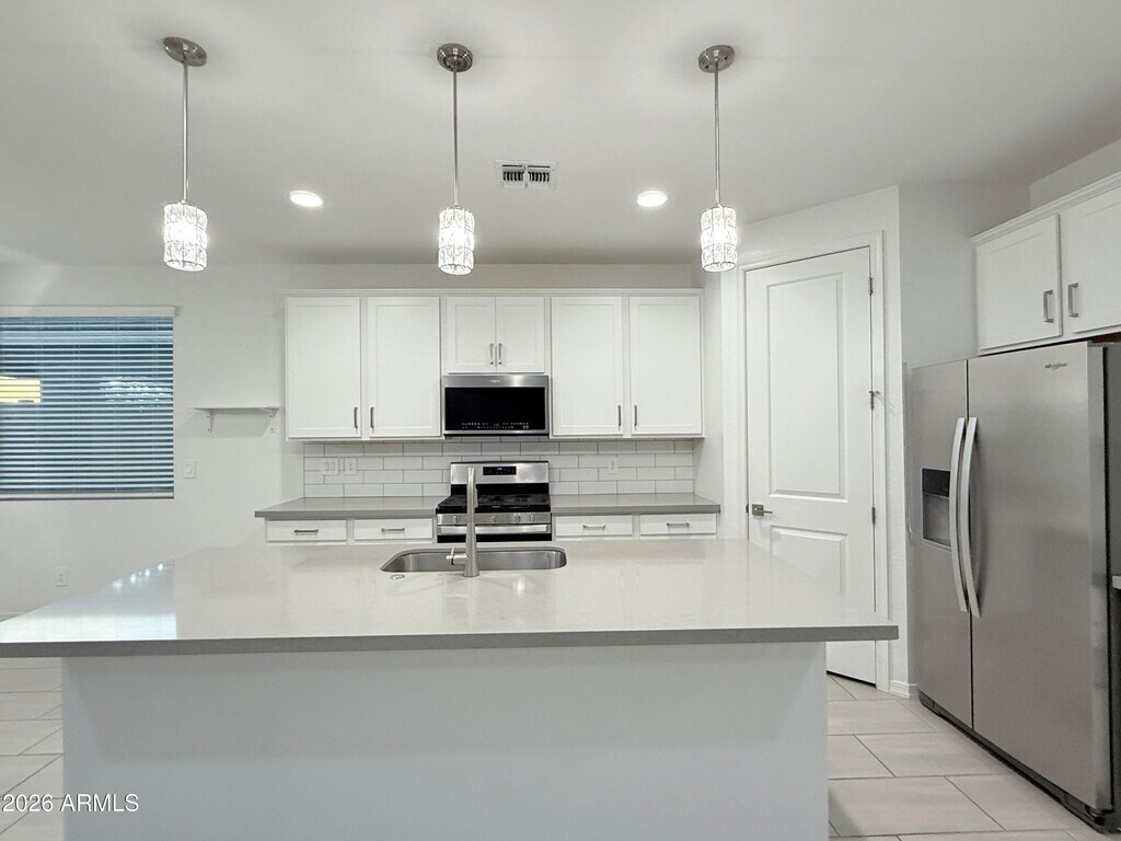 No Application Fees!! *$300 off the first month rent for a tenant that moves in prior to January 12th and signs an 18 month lease* Newer 4 bedroom,2 bathroom East Mesa home with upgraded finishes throughout located in Destination at Gateway East. The home features a spacious open floor plan with 12'' x 24'' tile flooring in all living and high traffic areas,neutral paint,recessed LED lighting,ceiling fans in every room,and 2-inch wood blinds. The bright living room flows seamlessly into the modern kitchen,which includes quartz countertops,subway tile backsplash,shaker cabinets,large island with breakfast bar,walk-in pantry,gas range,and all stainless-steel appliances. The split floor plan includes a large primary suite with walk-in closet,double linen closet for extra storage,dual sink vanity,and step-in shower. Secondary bedrooms are generously sized with good natural light. The laundry room includes upper cabinets for additional storage,and a washing machine and dryer may be provided upon request. The garage offers epoxy flooring and built-in storage cabinets. Low-maintenance yard and modern curb appeal complete this desirable East Mesa home. Conveniently located in East Mesa near the Loop 202 and US-60,this home offers quick access to dining,shopping,and entertainment. Just minutes from the Phoenix-Mesa Gateway Airport,Legacy Sports Complex,and Arizona State University Polytechnic campus. Close to grocery stores,restaurants,local parks,and highly regarded schools. Easy access to major freeways makes commuting throughout the Valley convenient. All Denali Real Estate residents are automatically enrolled in the Resident Benefits Package (RBP) for $55.00/month which includes Renter's Liability Insurance,Credit Building to help boost the resident's credit scores with timely rent payments,up to $1M Identity Theft Protection,HVAC air filter delivery (for applicable properties),our best-in-class resident rewards program,and much more!