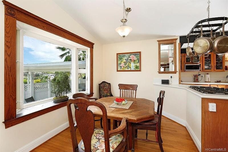 Property Id: 2341027 Welcome to your dream home in Kailua! This charming 3 bed, 2 bath single-family unit modern amenities including a gourmet kitchen, fenced yard and garage. Pets welcome! Enjoy the convenience of included utilities and on-site laundry. Contact us now! High on a hill with panoramic views of Kailua town from your living room windows, this stunning modernized home with classic antique and custom touches is walking distance to a neighborly mall with shops, groceries, and restaurants waiting to serve you. Everything has been done and done well, from classic oak floors and custom cabinets and window framing to Tulip-themed stain glass panels and modern kitchen with gas appliances inside, and outdoor BBQ covered lanai. A quiet den for your home office. Immaculate remodeled bathrooms. Fenced and clipped yards with specimen plants and even a caged aviary to raise tropical birds. Photo-voltaic Solar Panels for green energy .This is the home to see today in Kailua, where laid back families enjoy safe services in our town by the sea.