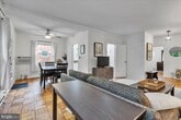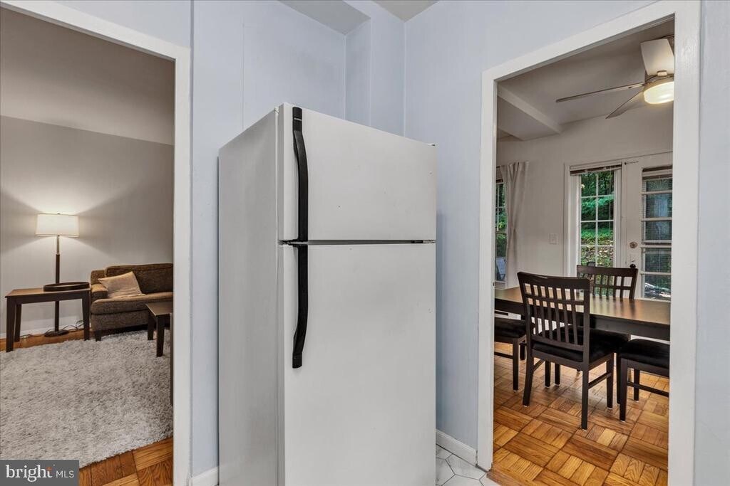 Discover a rare find in Park Fairfax! This fully furnished, light-filled condo is one of only six units in its building, offering unparalleled privacy and a seamless indoor-outdoor flow. The Space: Bathed in light from four sides, this 760 sq ft ground-floor residence features beautiful hardwood floors throughout its open L-shaped layout. The living room's oversized windows overlook your exclusive-use patio and the mature trees of the community's historic urban forest. The charming kitchen boasts butcher block countertops, a large pantry, and a new stove. The generous bedroom easily accommodates a king-size bed and features two large closets. Conveniences include an in-unit laundry closet with a newer stackable washer/dryer and a fully stocked utility closet. Move-In Ready: This turnkey home is fully furnished for comfortable living, including a king-sized bed, two sofas (one is a sleeper), a 4-person dining set, an entertainment center, and all kitchen essentials and linens. Location & Lifestyle: Live the "easy living" dream in the 132-acre Park Fairfax community, with access to 3 pools, a community gym, and tennis/pickleball courts. Enjoy a quick commute to the Pentagon, Amazon HQ, and the vibrant shops and dining of Shirlington.