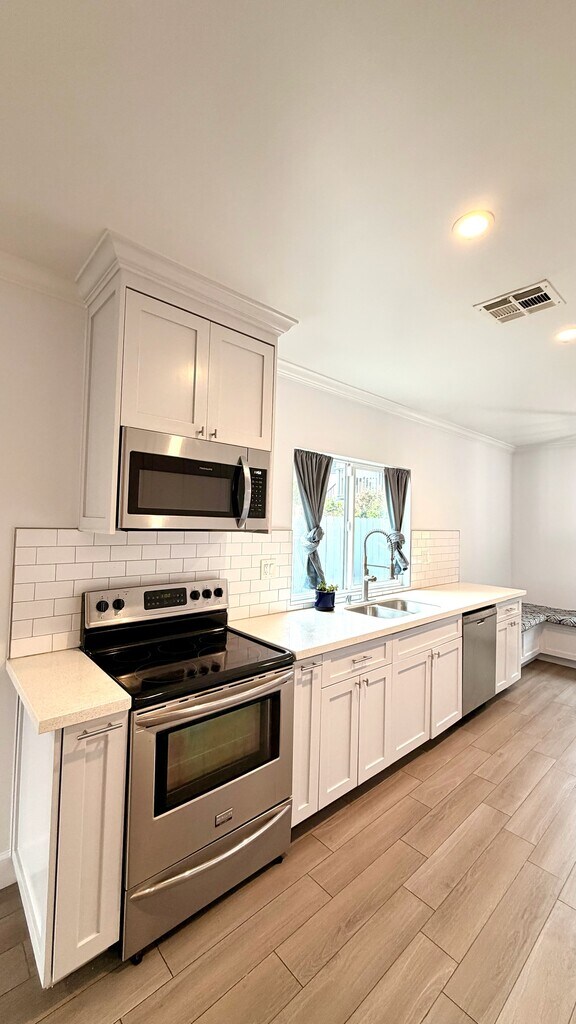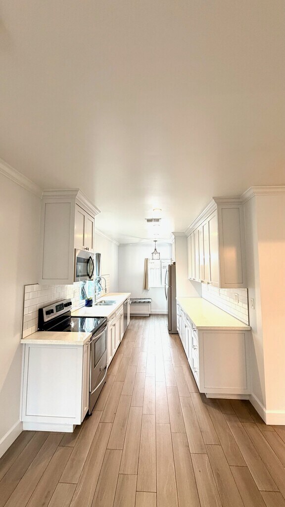 Welcome home to this beautifully built new construction 3 bedroom, 2 bathroom rear house, offering privacy, comfort, and modern living.This thoughtfully designed home features three spacious bedrooms, including a private primary suite with its own bathroom. A long, open hallway creates a bright and airy flow throughout the home.The large kitchen is perfect for everyday living and entertaining, offering abundant counter space, ample cabinetry, and a charming breakfast nook ideal for morning coffee or casual dining.Additional highlights include:- Freshly painted interior- Washer and dryer included- Televisions included for tenant convenience-Nest thermostat-ADT Alarm system- Private entrance-Private backyard space-New construction — clean, modern, move-in readyTucked away as a rear house, this home provides added privacy while still being conveniently located.This is a rare opportunity to enjoy modern comfort, space, and privacy in one beautiful home. Street parking only.