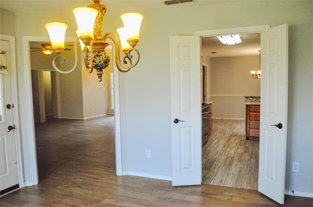This well maintained 3-bedroom, 2-bathroom home in the heart of Saginaw offers a blend of comfort and practicality. Wood plank tile floors run throughout, adding durability and style. The bright living room provides plenty of natural light, while the kitchen features granite countertops, ample storage, and a cozy breakfast nook with a bench seat window. A large dining area overlooks the backyard and living room, ideal for meals or gatherings. The private master suite includes a spacious en-suite with dual granite vanities, his-and-her closets, and a relaxing garden tub. Two additional bedrooms are located separately for added privacy. Outside, enjoy a covered patio with a ceiling fan and a spacious backyard, perfect for entertaining. The garage is equipped with epoxy flooring and a workbench. A well-appointed home offering modern conveniences in a prime location—don’t miss it!
