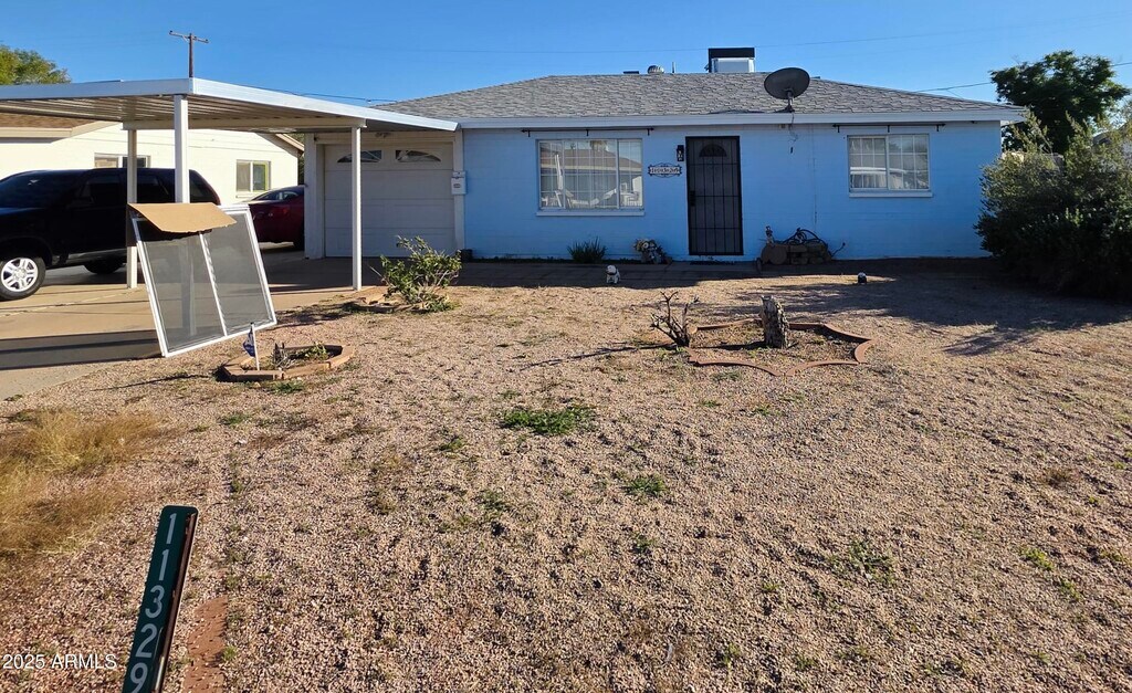 Cute home in Youngtown that features 2 bedrooms,1 bath and spacious covered patio. The bathroom has been updated,no carpet throughout,spacious backyard with chain link fence and RV gate to back alley. Additional parking available with the carport added in front of the garage for extra shade. This home has one studio/ecasita detached that has independent entrance through the side of the house (docs tab for info) it is leased separately. That unit will not have access to the laundry and backyard. This is a phenomenal opportunity to feel like your own home with lower bills cost. Must see