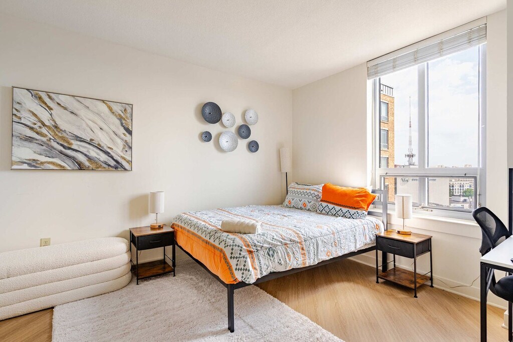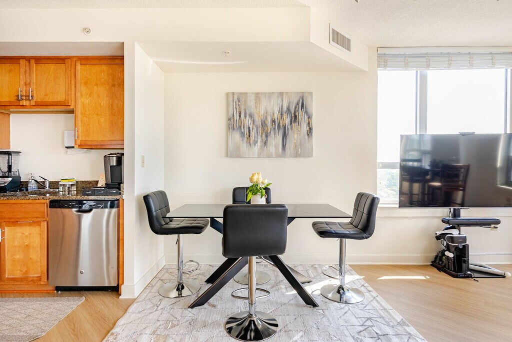 The advertised rate of $3,709/month is the lowest available price, based on a 1 month(s) stay with a move-in date of April 15, 2026. Rates vary depending on the duration of stay, season, and other parameters. For exact pricing and additional pricing components, please visit our website and enter your desired move-in and move-out dates. The rate is applicable when billed upfront; it can be higher if billed in multiple payments. Feel at home in this luxurious apartment in downtown Silver Spring, perfect for extended stays, corporate housing, and travel nurses. This apartment features a fully equipped gourmet kitchen with chef-quality cookware, and an in-unit washer and dryer. Entertainment is provided by a 65-inch smart TV with streaming services and 2,000+ channels, and a PlayStation VR gaming system with 20+ games. Secured in-building garage parking for one vehicle is included. Located in downtown Silver Spring near Georgia Avenue and Colesville Road, this apartment is within walking distance of The Fillmore concert venue, AFI Silver Theatre, Ellsworth Place shopping, Veterans Plaza, Whole Foods Market, Target, local cafes, and the Silver Spring farmers market. Enjoy quick highway access to I-495, Georgia Avenue, Colesville Road, and 16th Street for easy travel to Washington DC, Bethesda, and Northern Virginia. The Silver Spring Metro Red Line station is a 5-minute walk away, connecting you to downtown Washington DC in under 20 minutes. Pets are allowed. Early or late check-in/out may be accommodated based on availability, with check-in generally at 3:00 pm and check-out at 10:00 am. Includes high-speed fiber Wi-Fi and a dedicated ergonomic workspace. [SI]