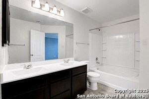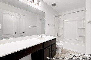 Nestled on a quiet cul-de-sac in the Cross Creek subdivision, this two-story brick-front home offers exceptional convenience with easy access to Lackland AFB, the 151 business corridor, shopping, dining, and more. The first floor features ceramic tile flooring throughout, providing durability and easy maintenance. The kitchen stands out with ample cabinet and counter space, a breakfast bar, and a refrigerator included for added convenience. Upstairs, all bedrooms offer comfortable layouts, with the primary suite featuring a well-appointed en suite bathroom complete with a double vanity and walk-in closet. Additional highlights include a water softener and access to desirable community amenities such as a pool and playground. This home combines practicality and location for a truly convenient lifestyle.