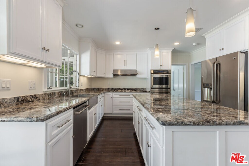 Nestled in a serene Bel Air/Brentwood neighborhood, this elegant single-story 3 bed, 3 bath home boasts a formal foyer, dining room, living room, and a spacious kitchen with high-end appliances. The master suite includes multiple closets and an en-suite bath with a soaking tub, large shower, and dual vanity. One additional bedroom features an en-suite bath, while the third bedroom is conveniently located next to another bath. The private backyard is a true oasis with a large patio, BBQ area, and a stunning pool. The versatile garage can be transformed into a gym or hobby area. Experience luxury living at its finest in this beautiful home! MLS# 25607287