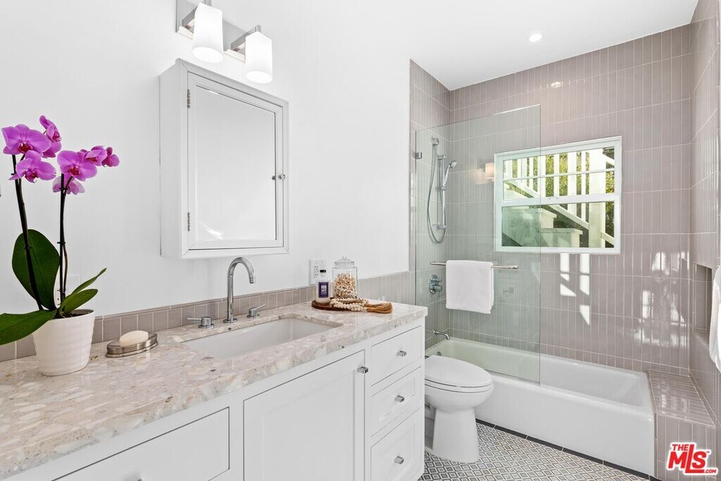 Stunning Mid-Century luxury building renovated to perfection. Light and bright with lots of new windows and located North of Wilshire, this beautiful large unit features hardwood floors, custom tile and cabinetry work. The spectacular kitchen includes stone counters, Bertazonni stove/oven, Fisher Paykel refrigerator and Bosch dishwasher. Everything is new including the mini-split for heat and air conditioning plus the stacking in unit washer/dryer. One enclosed garage space is provided. Enjoy the shared garden area with fountain and large patio from your back door. This is a must see! Easy access to everything in Santa Monica including the coveted Montana Ave for coffee, dining and shopping. MLS# 26673573