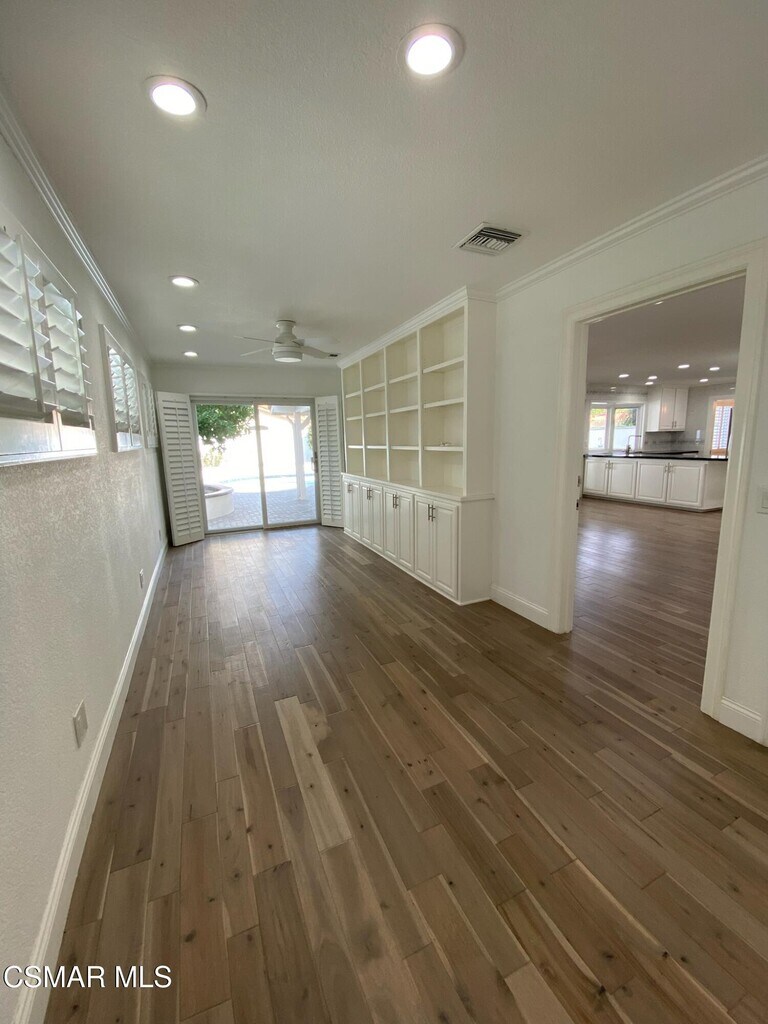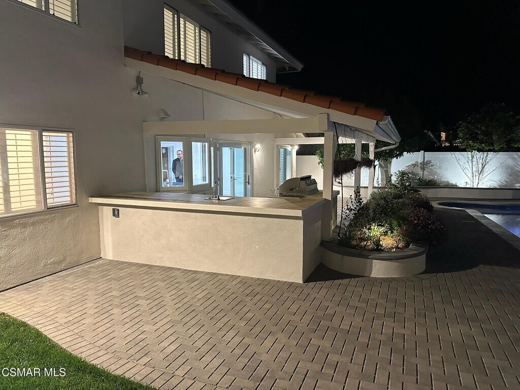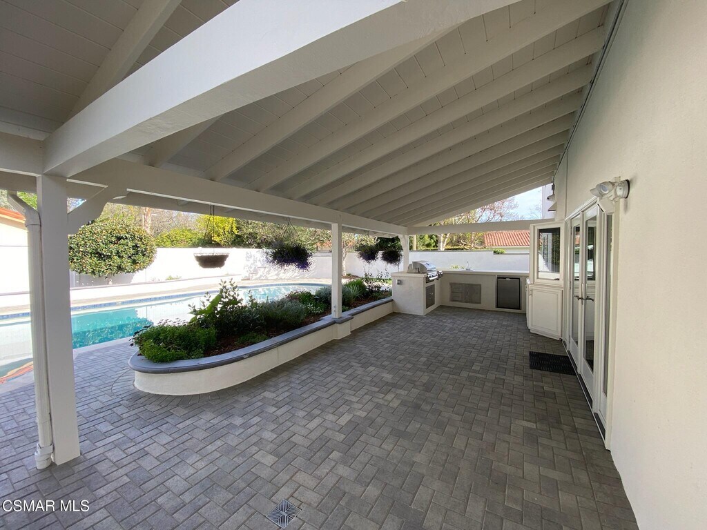 Westlake Village home spacious 4 bedrooms located upstairs with optional bedroom / office downstairs. 3 baths, Living room with fireplace. Formal dining, Upgraded kitchen with stainless steel appliances, adjacent family room with built in media area. Entertainers backyard with covered patio built in BBQ area, sparkling pool. Additional home features custom flooring, plantation shutters, recessed lighting, ceiling fans neutral decor throughout. Direct access to the 3 car garage with laundry area in garage and roll up doors.