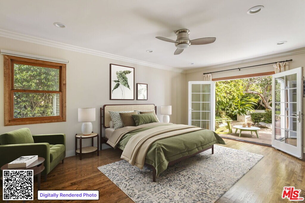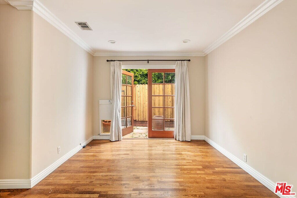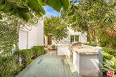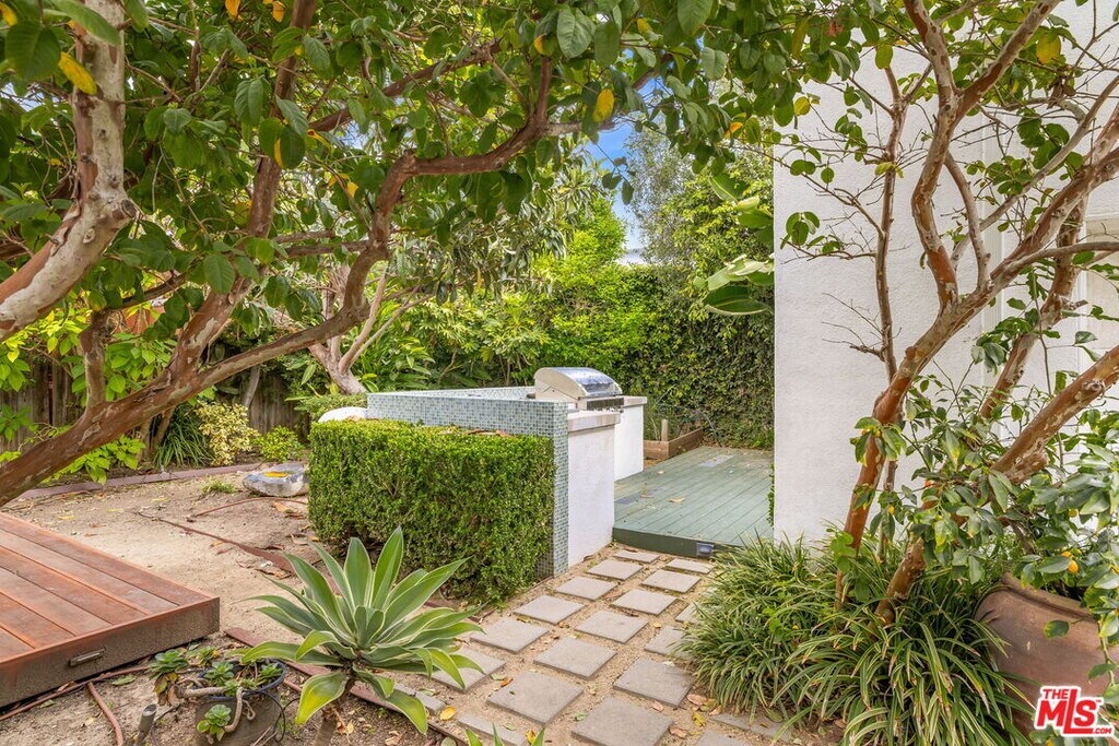 Set on a quiet tree-lined street in prime West Hollywood, this charming 2-bedroom, 2-bath Spanish-style home offers privacy, character, and easy indoor-outdoor living.Inside, the home features beautiful hardwood floors, arched openings, and a decorative fireplace, with large windows that bring in natural light throughout the living and dining areas. French doors open directly to the backyard, creating an easy flow to the outdoor space. The updated kitchen includes stainless appliances, custom cabinetry, and plenty of workspace. Both bathrooms have been refreshed, and smart home features include a Nest thermostat and electric keypad entry with cameras. Outside, the property offers a fully fenced yard ideal for pets, mature landscaping, and a built-in grill with an outdoor seating area perfect for relaxing or entertaining. A gated driveway leads to a two-car garage with Tesla charger. Located just minutes from West Hollywood, Hollywood, dining, shopping, and entertainment, this home offers a great combination of character, privacy, and convenience. MLS# 26664239