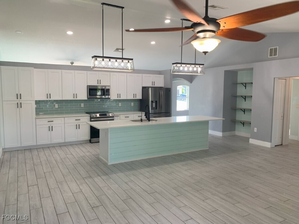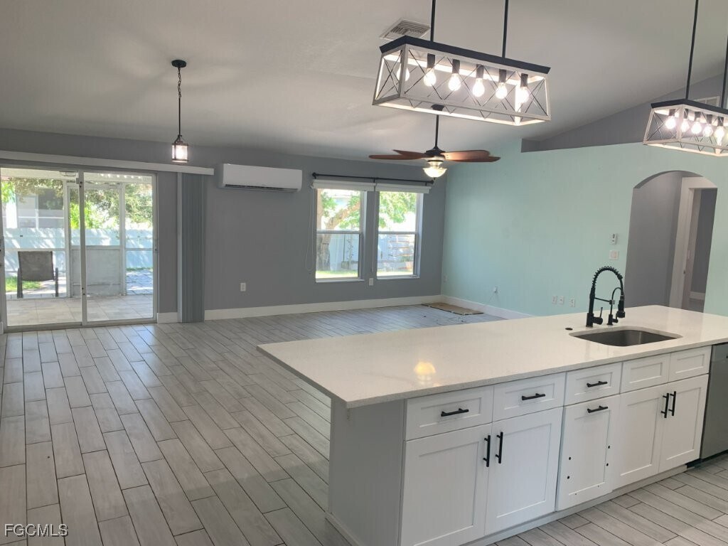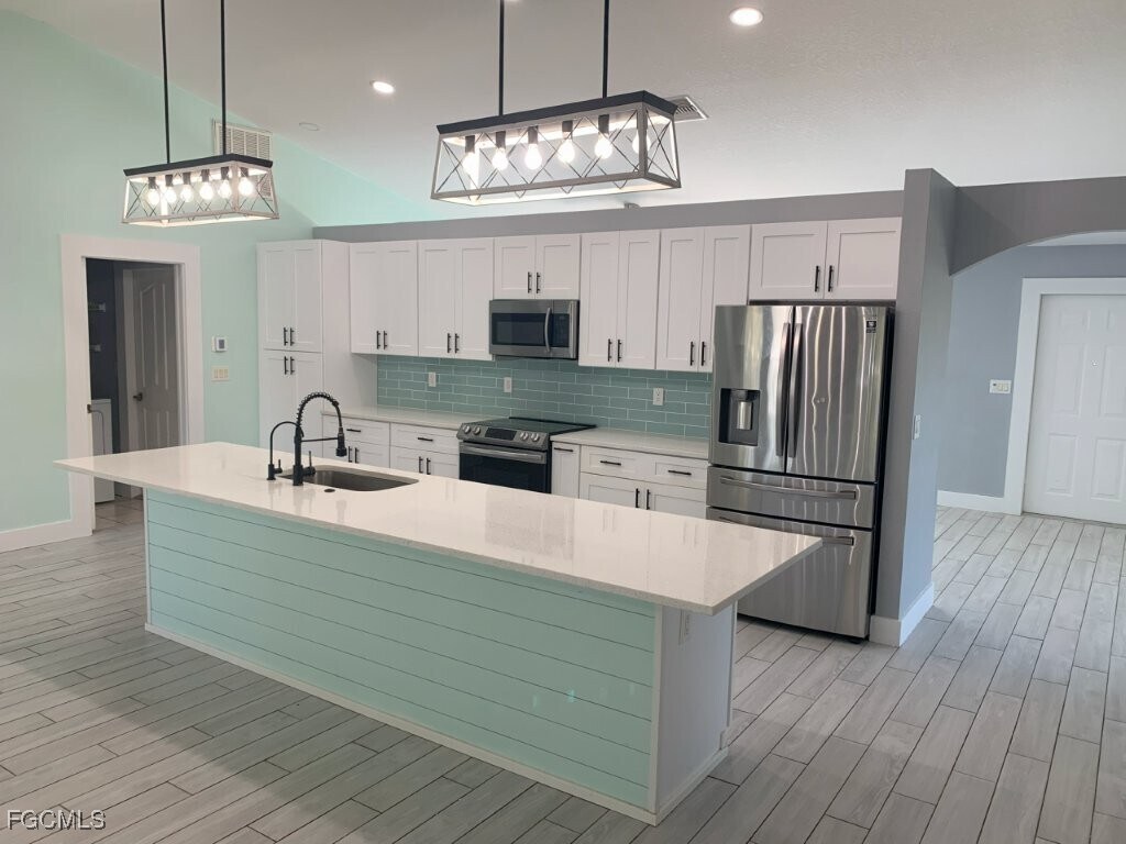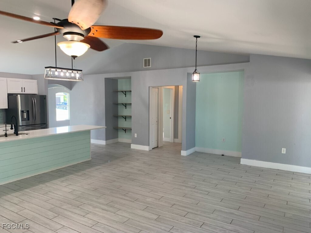 Enjoy SWFL living at its finest in this beautiful Cape Coral home! With a new roof,AC,kitchen,fence,& tiled flooring throughout as of 2023,this amazing home features 2017 sq. ft under air,3 bedrooms,a den/bonus room,separate family & living rooms,a built-in entertainment center,a huge kitchen with massive island & stainless steel appliances,a 2-car garage,extended driveway,ceiling fans throughout,lots of storage and much more! The primary bathroom has a step-in shower & separate soaker tub! Enjoy the large screened lanai & private fenced backyard with lovely pavers & trees! All warranted kitchen & laundry appliances,excluding the ice maker (for convenience only). Currently on a well system,with the switch to city water taking place eventually at the Owner's expense. Tenant to pay all in-home utilities and handle lawn care. Pets & smoking/vaping strictly prohibited. Great,quiet location near Pine Island Road,where you'll find shopping,dining,entertainment,grocery,schools & beyond! Available now! The Application Fee is $100 PER ADULT. One-time lease administrative fee of $225. Please note that properties within an Association may have an additional application process,will be subject to an additional fee(s) and an additional approval process.