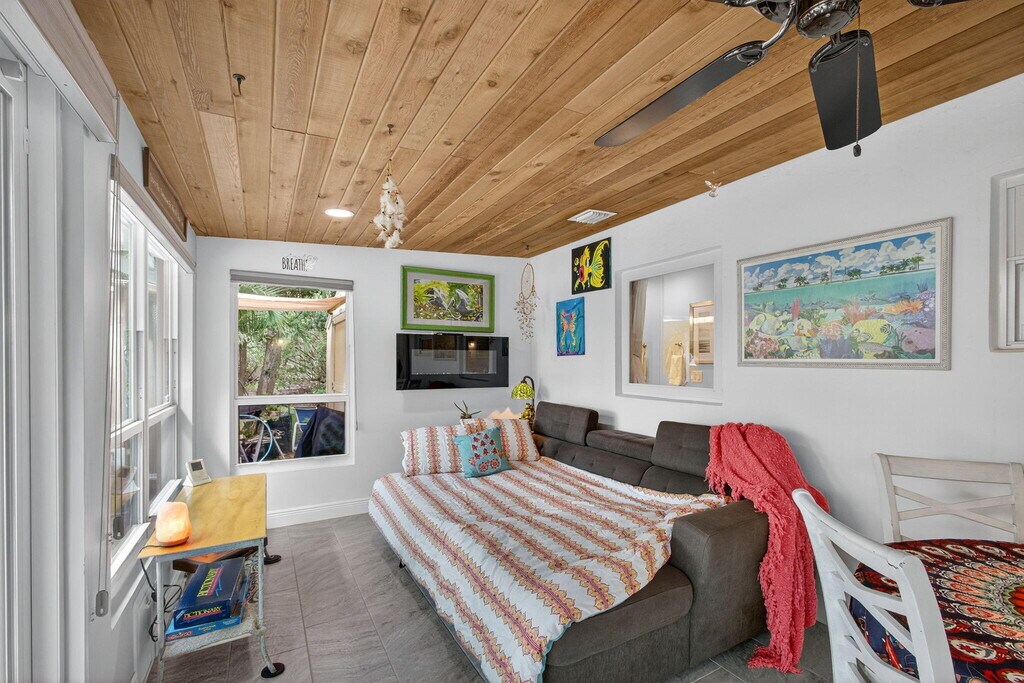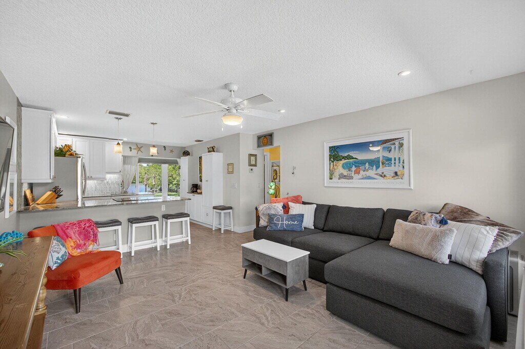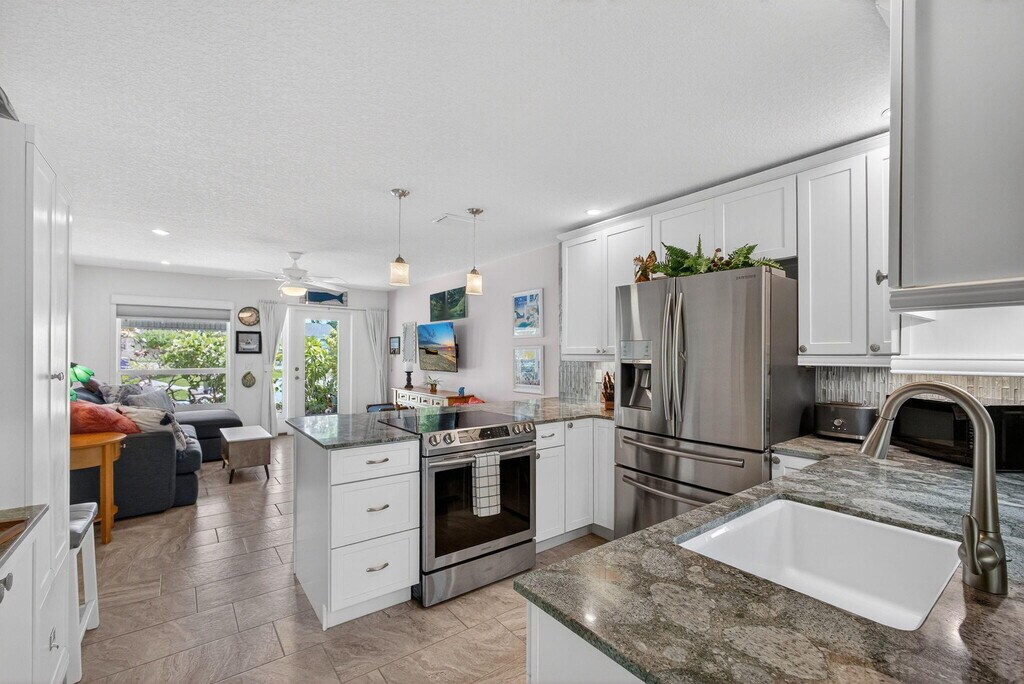 Discover a rare retreat on Jones Creek with direct water access and complete privacy. Perfectly serene and spacious yard inviting relaxation, capturing the essence of effortless Florida Living. Step outside to your own floating dock, gather around the fire pit under the stars, and launch your kayaks or paddleboards straight from your backyard, where the creek flows to the Loxahatchee River and Jupiter Inlet. Inside, an open-concept kitchen shines with custom cabinetry, granite countertops, and stainless-steel appliances, creating a stylish and functional heart of the home. The primary suite features a spacious walk-through closet and a spa-inspired bath with designer tile and quartz finishes. The guest bath includes a jacuzzi tub, perfect for unwinding after a day on the water.