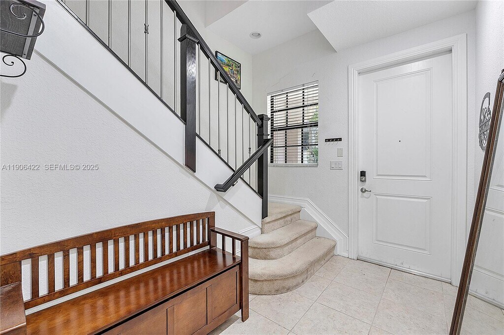 Impressive 3bedroom 3.5 bath townhome w/2car garage, offering ample living space and comfort. Entryway is spacious and welcoming with abundant natural light and an elegant staircase leading to main areas. The rooms are generously sized featuring laminate flooring. The main bedroom provides a serene relaxing retreat with spacious layout and bright open feel. The kitchen is equally impressive featuring abundant cabinets and granite countertops, stainless appliances, creating a cohesive functional cooking space. The property is surrounded by lush, tropical landscaping, including balconies that offer the opportunity to enjoy the outdoor environment. Community is gated with a gym, pool and tot lot. This is a perfect home!!