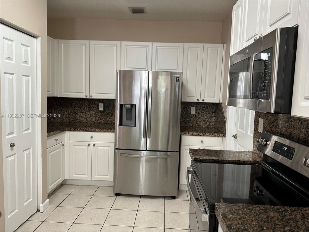 This Gorgeous Kingston model coach home 4 bedrooms /2.5 bathrooms now available for rent. Warm neutral color palette. The kitchen is well appointed with Tan Brown granite counters/ backsplash /GE stainless steel appliances. A mix of modern and classic chandelier light fixtures enhance the natural light bathing the rooms. Crema marfil & ocean white marble floors walls of the showers in bathrooms add a touch of luxury, while the Toto washlets provide a mini-spa experience. Ceramic tile floor on the first level and cherry wood laminate on the stairs bedrooms on second floor. The 2-car garage offers extra storage space as well as an area for Gym. Low maintenance backyard patio is an ideal space to entertain friends family. Accordian-style hurricane shutters provide extra protection . MLS # A11992207