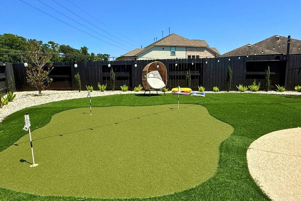Discover luxury in Humble, TX, just minutes from Houston and George Bush Intercontinental Airport. This 4-bedroom, 3.5-bathroom retreat features a private pool, hot tub, putting green, sauna, Peloton bikes, gym, and movie room. Perfect for families or groups, the home sleeps up to 11 with modern finishes and 7 Smart TVs. Relax in style or explore nearby shopping, dining, and attractions. Guests also enjoy access to a lagoon-style beach, trails, and resort-style community amenities. Welcome to your luxury retreat in Humble, Texas. This spacious 4-bedroom, 3.5-bath home combines the comfort of a private residence with the feel of a resort. Designed for families, groups, and business travelers, the property offers a blend of relaxation, entertainment, and wellness. Inside, enjoy open living areas, a movie screening room, a fully equipped kitchen, and comfortable bedrooms that sleep up to 11. Outside, the private backyard features a pool, hot tub, a putting green, and playground, while community amenities include access to a lagoon-style beach and park lake. With thoughtful details throughout, this home is set up to provide an unforgettable stay. Early check-in and late checkout may be available upon request for an additional fee. The home is located in a desirable master-planned community in Humble, TX, just minutes from George Bush Intercontinental Airport and a short drive to downtown Houston. Enjoy easy access to shopping, dining, and entertainment at Deerbrook Mall, explore local parks and walking trails, or spend the day at nearby attractions like the Houston Zoo, Museum District, and Minute Maid Park. The neighborhood itself offers resort-style amenities, including a lagoon-style beach, playgrounds, and community events, making it ideal for families and groups looking for both relaxation and convenience. With quick access to major highways, you can reach top Houston destinations in under 30 minutes while still enjoying the peace and comfort of a residential community. Smoking, vaping, or open flames are not allowed inside the home, with a $250 fee for violations. Parties, events, or unregistered guests are not permitted. Pets are not allowed; however, verified service animals are accepted with proper documentation provided at least 72 hours before check-in. Quiet hours are from 10:00 PM to 7:00 AM. Check-in is after 3:00 PM and check-out is by 11:00 AM. Only use the pool, hot tub, sauna, and gym equipment as intended, and children must be supervised at all times. Report any damages or maintenance issues immediately to ensure prompt attention. Excessive mess or failure to follow rules may result in additional cleaning or damage charges. Includes high-speed WiFi, 7 Smart TVs ranging from 55 to 75 inches, and a keyless smart lock entry and security system. A laptop computer is not included.