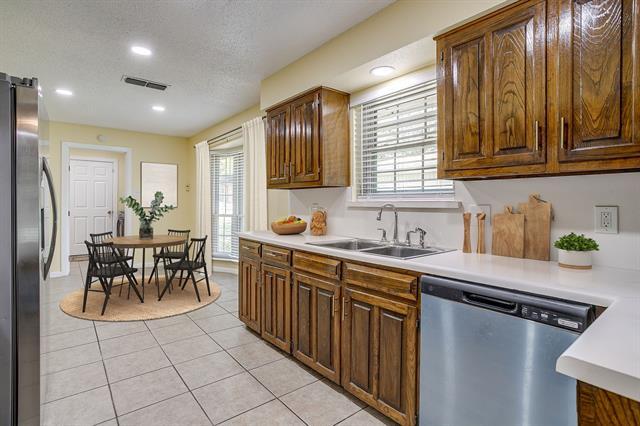 Get ready to call this place - HOME. Located in an great neighborhood pocket. From the street, it’s got that classic Texas charm with big mature trees shading the front yard and a look that just feels welcoming. Inside, you’ll find three good-sized bedrooms, two full baths and lots of CLOSET SPACE. The primary bedroom has dual access to the ensuite bathroom and TWO CLOSETS. The second bedroom is also equipped with two closets. This home offers over 2,000 SF of living space that actually feels OPEN and easy to live in. SUNLIGHT pours in through all the big WINDOWS, keeping everything bright and cheerful. The living room centers around a cozy wood-burning fireplace with a brick hearth and wood mantel – perfect for chilly nights or just hanging out with friends. Imagine the stockings hanging there this holiday season. The kitchen offers lots of COUTNERSPACE to work on and ample CABINETS for STORAGE. It flows right into the dining area, so cooking and catching up with everyone happens in the same space without feeling cramped. Solid surface flooring - NO CARPET - throughout! Out back, there’s a sweet GAZEBO that makes the yard feel like a little escape – great for morning coffee or evening cookouts, plus it is fully FENCED to keep our four-legged family members close. Two-car GARAGE PLUS a 2-space CARPORT protection from the summer sun or other Texas weather. Close to Moseley Park -, a family aquatic center, a playground, and a basketball court. Additionally, the girls’ softball complex includes 3 fields, a restroom-concession building, and two shade pavilions. Also close to Townsend Park is a neighborhood with amenities such as a playground and soccer practice fields. If you’re looking for a comfortable, move-in-ready spot with character and room to breathe, in a quiet neighborhood, then this IS THE ONE worth seeing. Landlord is open to a 6 - 15 month lease! Available for lease NOW– come make it yours!