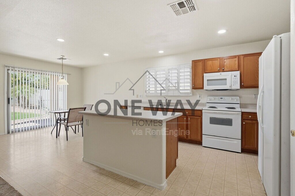 Welcome to 11352 East Renata Avenue, a well-maintained single-story stucco home offering 2,175 square feet of comfortable living in Mesa. The bright, open-concept layout features a spacious carpeted living room flowing into a tile kitchen with a center island, honey oak cabinetry, and appliances that convey with the home as a courtesy — please note that appliances are provided as-is and the owner will not be responsible for repair or replacement during the tenancy. All three bedrooms include plush carpet, ceiling fans, and plantation shutters, while the primary suite offers a walk-in closet and a double-vanity en-suite bath. A covered patio opens to a private backyard with grass and block wall fencing, and with landscape maintenance included, you can enjoy the outdoor space without the upkeep. The home also includes an in-unit laundry room, pantry, and a private 2-car garage. By submitting your information on this page you consent to being contacted by the Property Manager and RentEngine via SMS, phone, or email.