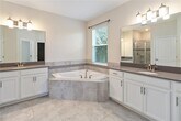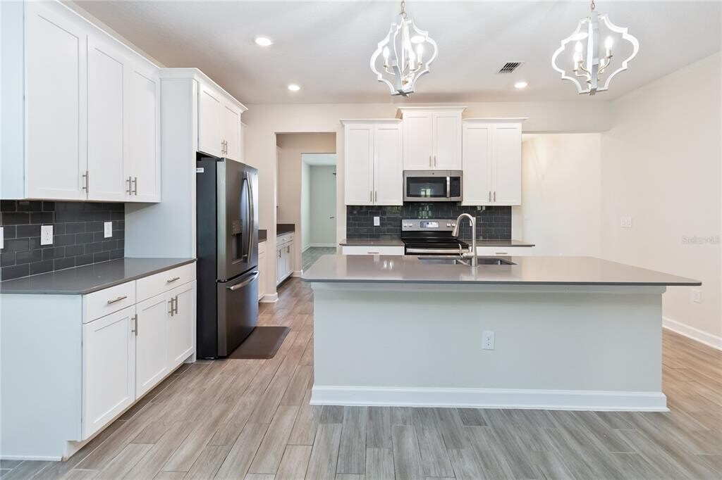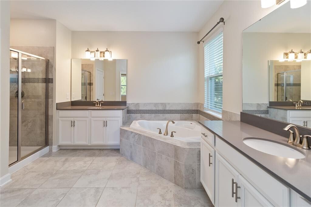 Stunning 5-Bedroom Solar Home in Lake Nona’s Storey Park!. Beautifully designed two-story single-family home in the serene and sought-after community of Storey Park,Lake Nona. This spacious 5-bedroom,3.5-bathroom residence is a solar-powered,energy-efficient home offering modern comfort and style throughout. The gourmet kitchen is a chef’s dream — featuring stainless steel appliances,sleek quartz countertops,a center island,glass backsplash,coffee bar,and a huge walk-in pantry. The primary suite,conveniently located on the first floor,offers a tray ceiling,walk-in closet,and a luxurious ensuite bath with double vanities,a glass-enclosed shower,and a soaking tub. The main level also includes a half bath,laundry closet,and beautiful ceramic plank tile flooring that flows seamlessly through the open-concept layout and high ceilings. Upstairs,enjoy a spacious loft/game room,four additional bedrooms,and a full laundry room. Step outside to a screened patio with privacy hedges,an open patio with a free-standing hot tub,and a fully fenced backyard with no rear neighbors and gate access to community amenities — perfect for relaxing or entertaining. Additional features include a tandem 3-car garage and paver driveway. Residents of Storey Park enjoy a resort-style lifestyle with amenities such as a resort pool,lap pool,splash pad,Jacuzzi spa,24-hour fitness center,game room,food pavilion,sports courts (basketball,tennis,volleyball),soccer/football field,dog park,nature trails,and community events year-round. Rent includes high-speed internet and cable. Located in an excellent school district,zoned for Innovation Middle School and the new Innovation High School. Easy access to SR-417 and SR-528,and just minutes from Lake Nona Medical City,UCF College of Medicine,VA Hospital,USTA National Campus,Valencia College,Lake Nona Town Center,Boxi Park,and Orlando International Airport. MLS# O6355551