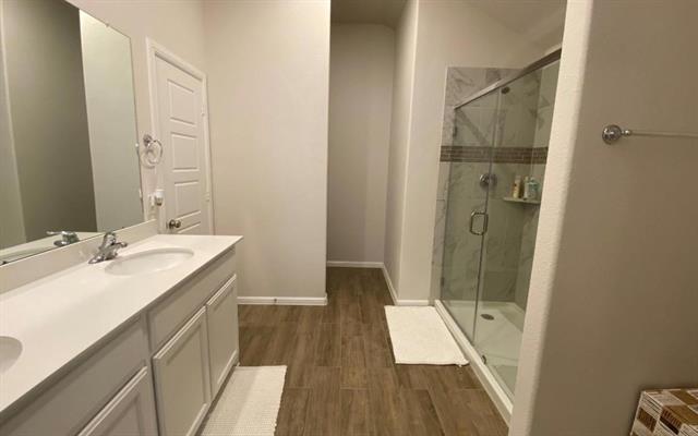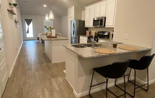 Beautifully maintained 2-year-old M-I Home in Mesquite, Texas! This single-story features wood-look tile flooring throughout the main living areas, modern marble-inspired tile in the bathrooms, and abundant natural light. The open layout includes a spacious family room, a private hallway with two secondary bedrooms and a shared bath, and a stylish kitchen with granite countertops, stainless steel appliances, and a geometric tile backsplash. The dining area overlooks the covered patio, perfect for outdoor entertaining. The owner’s suite is tucked away at the rear of the home and offers a bay window, dual vanities, a walk-in shower, and a large walk-in closet. Enjoy the benefits of a like-new home without the wait for new construction.