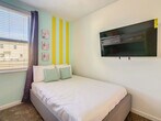 Experience the excitement of the new Epic Universe park this May 22nd by booking your stay in this fantastic vacation condo at Champions Gate. This spacious condo, inspired by the sun of Florida and the magic of Walt Disney World, offers a premium location and elegant style for an unforgettable family vacation. The property features a master bedroom with a king-size bed and a flat-screen smart TV, a second bedroom with a bunk bed and a full-size bed, and a living room with a sofa bed and digital smart TV. Enjoy full complimentary access to all the wonderful resort amenities, including a gym, heated swimming pools, a lazy river, a water park, and more. The fully equipped kitchen, game room, and laundry room provide everything you need for a comfortable stay. The condo also includes air conditioning, a laptop workspace, bed linens, four smart digital-cable TVs, patio furniture, hair dryers, ironing supplies, free parking, high-speed internet, and hangers. Additional services are available for an extra cost, including pack and play, high chair, early check-in, and late check-out. Please inquire about these services prior to your stay to ensure availability. Located just minutes away from major attractions, this condo is 18 miles from Sea World, 22 miles from Universal, and 14 miles from Disney World Magic Kingdom. Nearby, you'll find outlets like Ross Dress for Less and Sephora, supermarkets such as Publix and Target, and various local restaurants and golf courses. Transportation options include Uber and Lyft, making it easy to explore the area. Guests must be at least 18 years old to book a reservation. No unregistered guests, smoking, or pets are allowed inside the property. The condo features a side entry and requires guests to share a guest list to create and share QR codes for resort access. The property is exclusively for vacation use and does not permit filming without prior authorization. A safety protocol is in place to ensure the well-being of guests and personnel, with pre-check-in cleaning and check-out care following WHO and HSE standards. [SI]