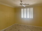 This fabulous 2-story townhouse has 3 bedrooms - 2 masters (one upstairs and one downstairs), 3 1/2 baths, Walk-in closets, travertine marble flooring & Prego flooring throughout, crown moldings, 4 inch baseboards, plantation shutters, two tone paint, ceramic tile on backyard patio. Gas Fireplace in Living Room. Bedroom and full bathroom downstairs, upstairs balcony, covered rear patio. Air Conditioner New in 2024. Whole house water softener & RO system on Kitchen sink. Front yard maintained by HOA.