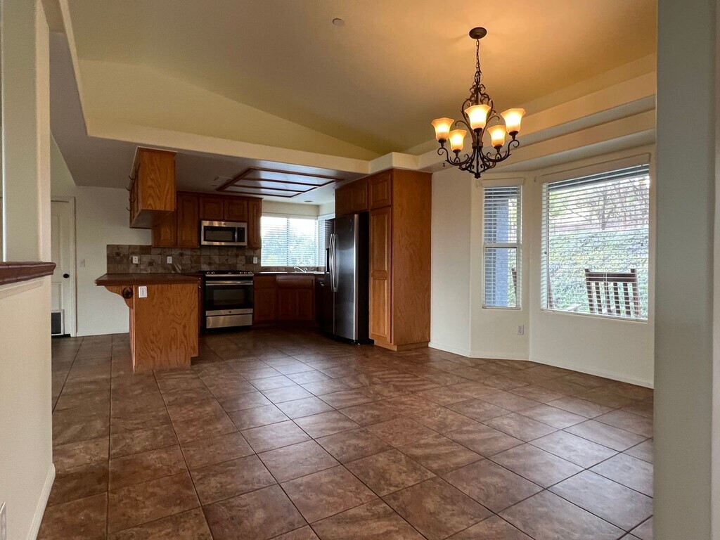 Lovely 3 bedroom home with large family room with a charming wood burning stove as well as a large slider out to the back yard and covered patio. Open kitchen features all stainless steel appliances and bar The master bedroom with vaulted ceiling has it's own slider to the back yard and patio as well as an en suite bath with a large glass-enclosed shower and separate tub. Ceiling fans in family room and all 3 bedrooms. No carpet. House has 3 car attached garage plus spacious front driveway. On propane, tenant responsible for regularly filling tank. Washer, dryer and refrigerator provided for convenience only. Small pets considered DO NOT DISTURB CURRENT OCCUPANT. *All photos may not depict current condition* Please call our office at or visit our website at for more information. All applicants must complete a PetScreening profile even if the household does not have a pet/animal. Please see the link below or contact the office. ext 1192 CA DRE#01197438