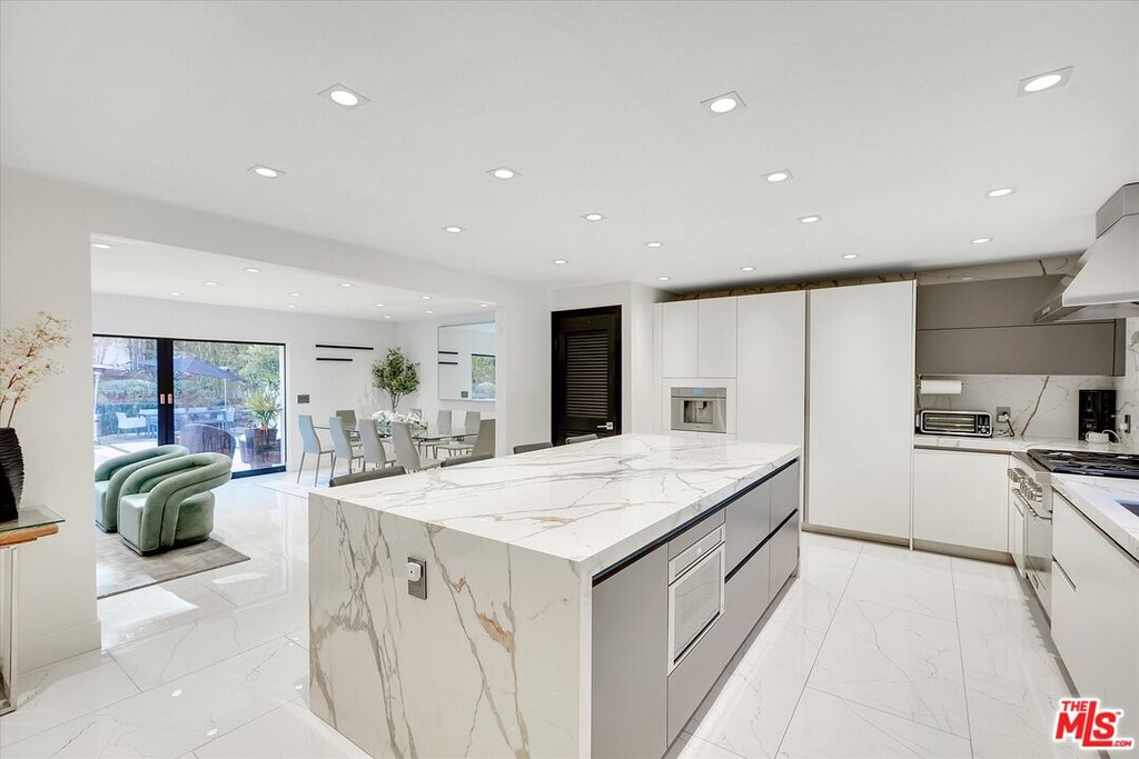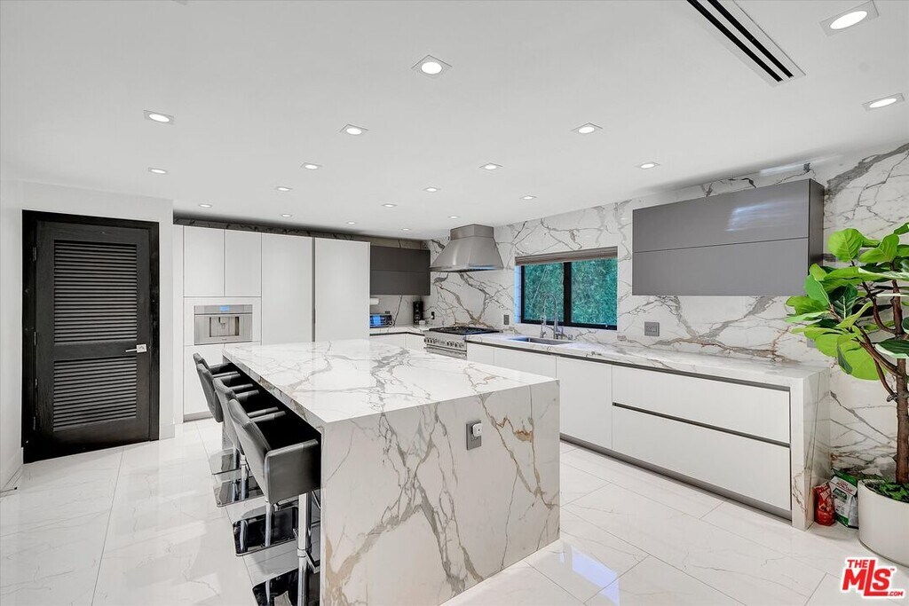 Welcome to this beautifully reimagined 3 bedroom, 4 bathroom home, ideally situated just off of Sunset Blvd, with easy access to the 405 FWY. Located near the end of a cul de sac, this single story home offers a seamless flow, abundant natural light and a serene atmosphere that make it a perfect retreat. This thoughtfully designed residence features a basketball court, 3 ensuite bedrooms, and porcelain floors throughout the house. The fully equipped gourmet kitchen include high end appliances, a large island, with a seating area, and a built in coffee machine. Step outside to enjoy the peaceful outdoor area, which is an entertainer's dream, complete with an outdoor kitchen, a built in BBQ, multiple seating areas and a fire pit. Owner is a real estate broker. MLS# 26640691