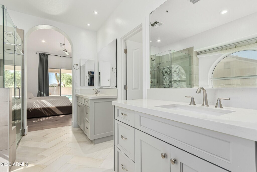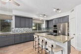 Exquisite corner lot rental ready to impress! This 4-bedroom beauty features a 2-car garage and RV gate,offering both style and function. Inside,you'll love the wood-look floors,vaulted ceilings,and charming wall niches that enhance the open living and dining area. Gather around the cozy gas fireplace in the inviting family room,or cook up a feast in the sleek kitchen boasting stainless steel appliances with wall ovens,mosaic tile backsplash,granite counters,track lighting,custom cabinets,and a center island with breakfast bar. The main bedroom offers direct backyard access,a private ensuite with dual sinks,a soaking tub,and a generous walk-in closet. A versatile den makes the perfect home office or fitness room... Outside,unwind under the covered patio,take a dip in the sparkling pool,and enjoy breathtaking mountain views. This home has it all,space,comfort,and the perfect Arizona lifestyle waiting just for you! Come and experience it for yourself!
