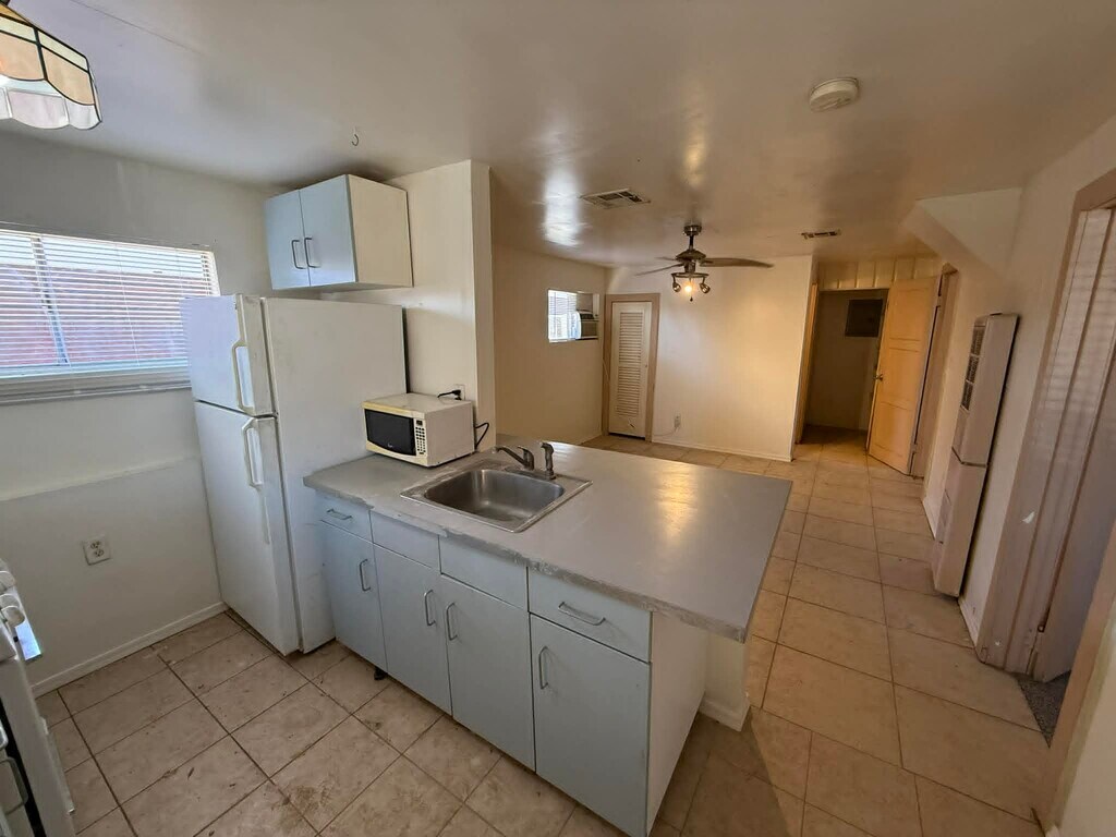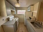 Charming duplex in a convenient central Tucson location close to parks, shopping, and bus lines. This cozy home features a functional layout with tile flooring in the main living areas and brand-new carpet in the bedrooms for added comfort. The kitchen includes a refrigerator, stove, and microwave, with plenty of cabinet space. Enjoy a covered patio perfect for relaxing outdoors and a comfortable living space with vaulted ceilings. Main cooling is swamp cooling but there is a AC unit to assist. Washer and dryer are included as is. All utilities are included in the rent, making budgeting simple!! Pet friendly and move-in ready. Call today to schedule a showing! (Unit 2.)