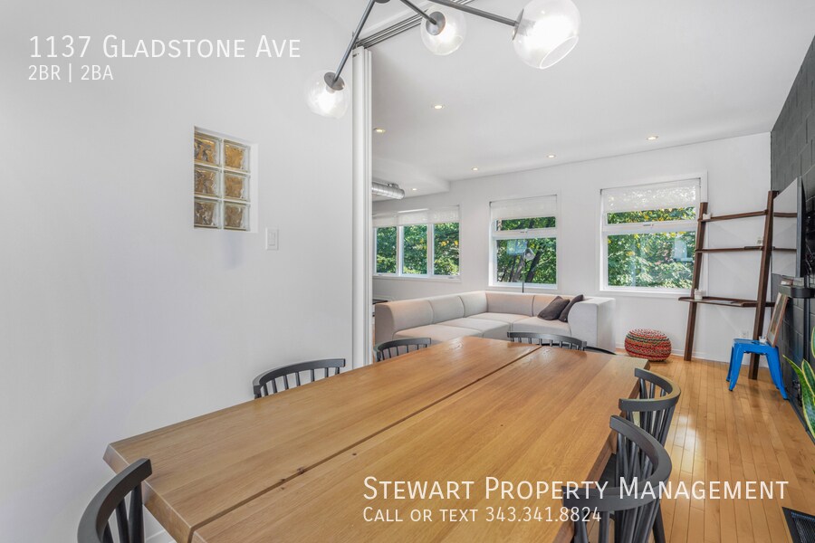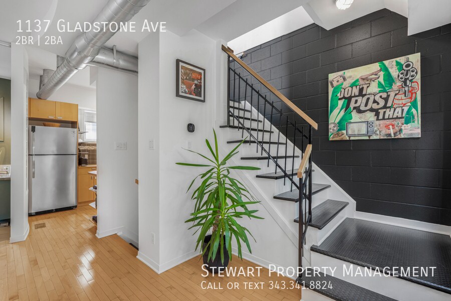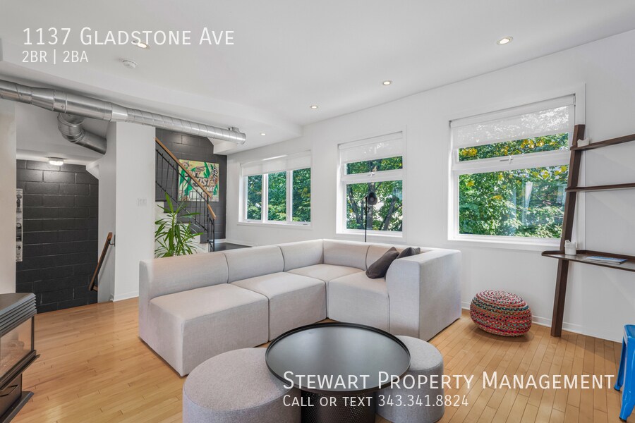 AVAILABLE NOVEMBER 1st!! YOUR URBAN RETREAT IN HINTONBURG — BRIGHT LOFT-STYLE TOWNHOME • Experience modern urban living at its finest at 1137 Gladstone Avenue, a stunning loft-style townhome located in the vibrant Hintonburg neighbourhood — one of Ottawa's most desirable areas, known for its eclectic mix of cafés, boutiques, and creative energy. Features: • 2 bedrooms • 2 bathrooms • In-unit laundry • Balcony— perfect for morning coffee, evening relaxation, or enjoying the fresh air • Fenced outdoor space • 2 parking spaces – garage + driveway • Unfinished basement (great for storage) • UTILITIES EXTRA This bright and modern home offers an open-concept living space with high ceilings, exposed brick, and contemporary finishes throughout. The main level includes a flexible bedroom or office space with direct garage access. The upper level features a stylish kitchen with stainless-steel appliances and an open dining/living area, perfect for entertaining or relaxing. The top floor is dedicated to the spacious primary suite with ensuite bath, walk-in closet, and access to a private balcony. Enjoy the convenience of in-unit laundry, ample storage, and a fully fenced outdoor area ideal for quiet evenings. Location: • Steps from Wellington Street West shops, cafés, and restaurants • Close to public transit and O-Train LRT • Minutes to downtown Ottawa • Nearby parks, bike paths, and local markets • Vibrant community surrounded by schools and amenities Criteria: • No pets • Non-smoking unit/premises • One-year lease minimum • First and last month's rent required This property is professionally managed by Stewart Property Management